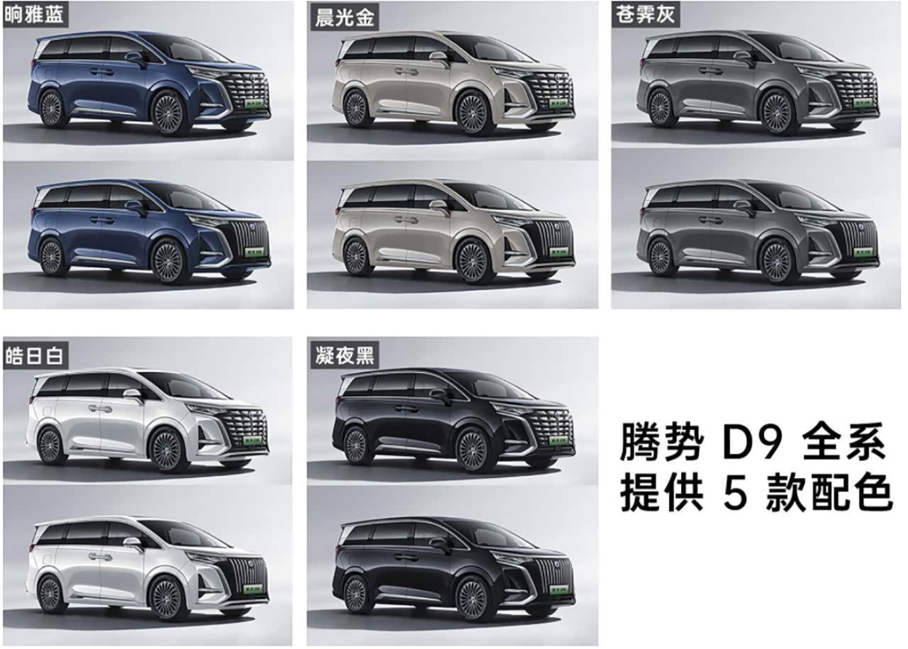 腾势D9是腾势旗下首款中大型豪华MPV车型,共计推出七款车型,其中四款为DM-i超级混动版本,三款为纯电版本,指导价:32.98-45.98万元。腾势D9是基于全新平台打造的MPV车型,天生豪华生而来电,是目前少数的新能源平台打造的MPV产品,而且还有比亚迪的三电技术以及混动技术加持,在技术领域绝对是业界领先的存在,并且强调了豪华产品属性以及安全性能和领先的生态体系。