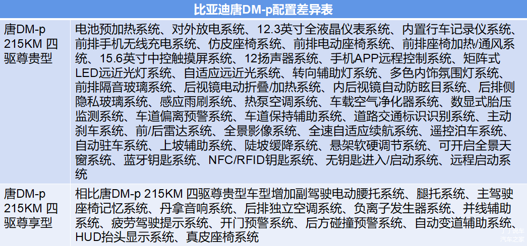 动力层面,比亚迪唐DM-p车型NEDC纯电续航里程215km,馈电油耗仅需6.5L/100km。