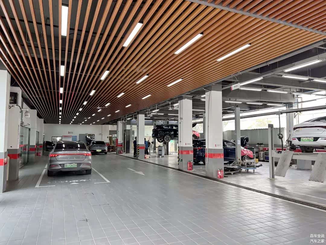 整个店面装修一灰白为主,整体风格简洁大气,并没有过度的装修,很符合比亚迪的环保理念。