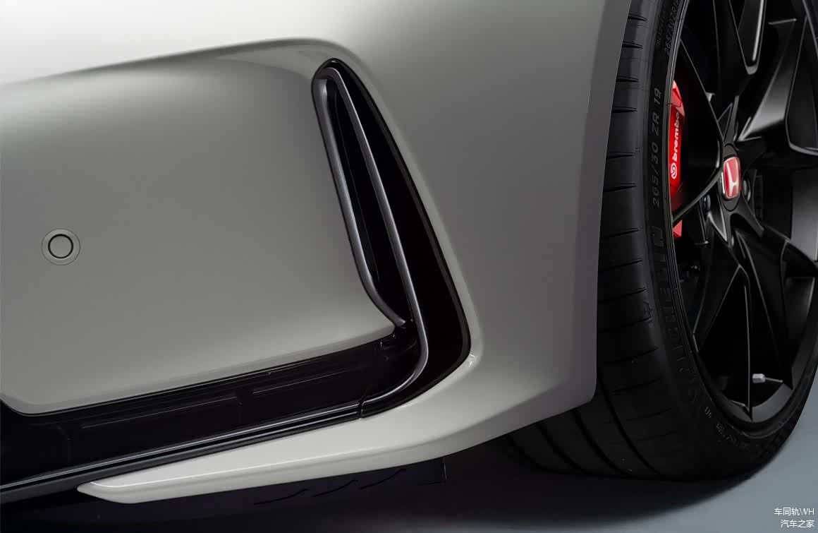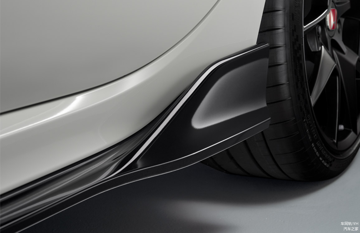 思域Type-R前唇加入了这种高光处理的黑色扰流板,可以梳理前方空气。
