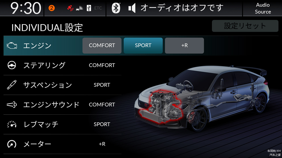 值得注意的是,三种驾驶模式都支持发动机、转向、悬架、声浪、中控系统、仪表的参数调整。