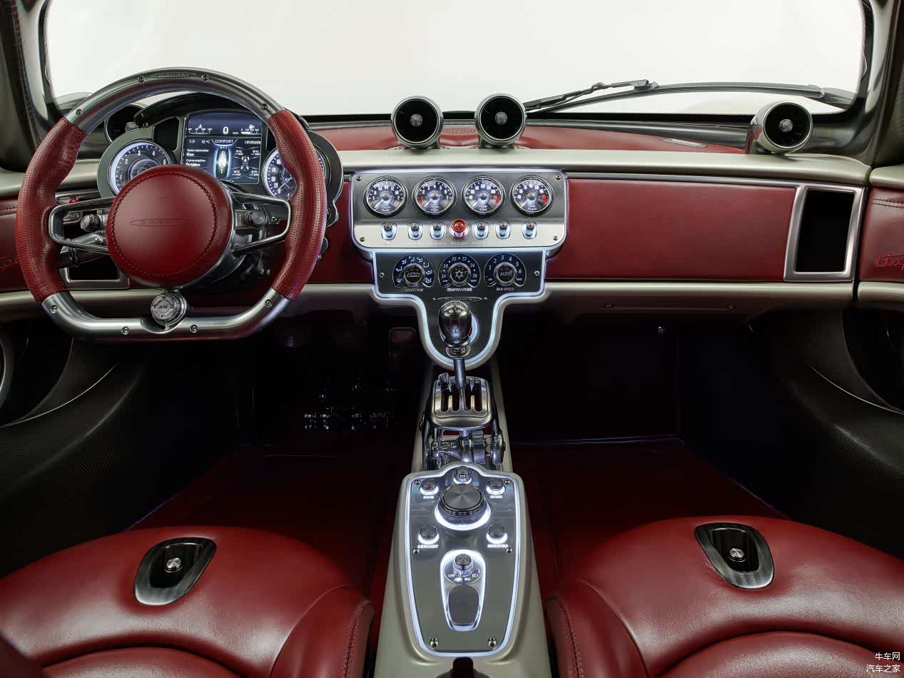 进入车内,Utopia拥有帕加尼引以为豪的精美车厢,对称式的复古设计相当典雅,大量金属和皮质的搭配犹如艺术品一般细腻,铝制的仪表台面板内是机械指针式仪表盘,显示效果好像太空飞船一样充满未来感,另外新车可以选装机械式手动变速箱档杆,将机械的魅力展现到了极致。