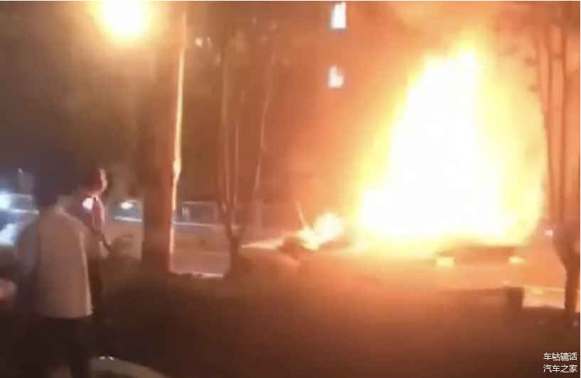 从网络曝光的图片来看,车辆的火势很大,几乎整辆车都被熊熊大火包围了。一旁的绿化带地上,也散落着疑似车辆撞击掉落下的车身零部件碎片。