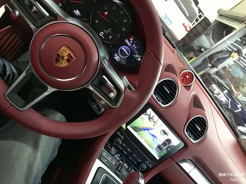 安装好的保时捷718秒表及倒车影像效果展示