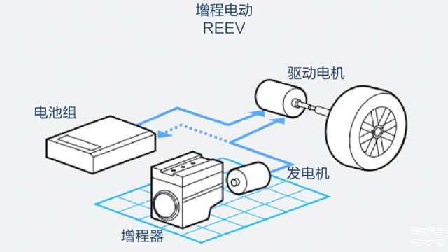 增程式混动,就是发动机永远不会参与车辆行驶的直接驱动;驱动的动力来源是电池、发电机,或两者一起驱动。