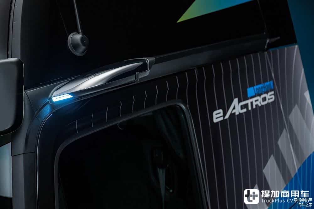 最新一代的MirrorCam电子后视镜系统也被集成到了eActros LongHaul上。镜架更紧凑、画质更清晰、防脏污性能更强,都是这款电子后视镜系统的优势。