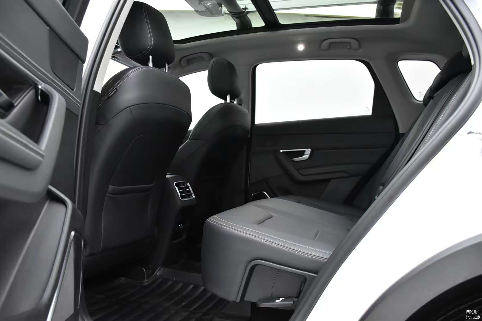 后排有几个点是小编最为喜欢的,一是可开启全景天窗,一直延伸至后排乘客头顶,车内通透度极好;二是后排带有空调出风口,冬暖夏凉;三是后排座椅角度支持调节,上图为最仰状态,半躺姿势长途乘坐很舒服。