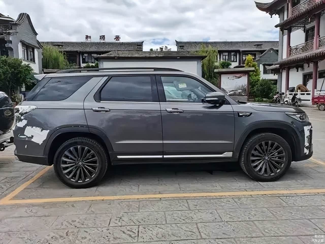 车身侧面使用十分平整的线条进行设计,从前翼子板处贯穿至车尾的腰线刻画出了极为修长的车身姿态。C柱处倾斜的“鲨鳍”饰板传承了自初代车型开创而来的经典设计,与福特探险者形似,侧裙处加粗的“帆板”镀铬饰条还为整车提供了豪华感。尺寸方面,全新长安CS95长宽高分别为4949mm/1940mm/1805mm,轴距为2810mm,与现款车型基本保持一致。