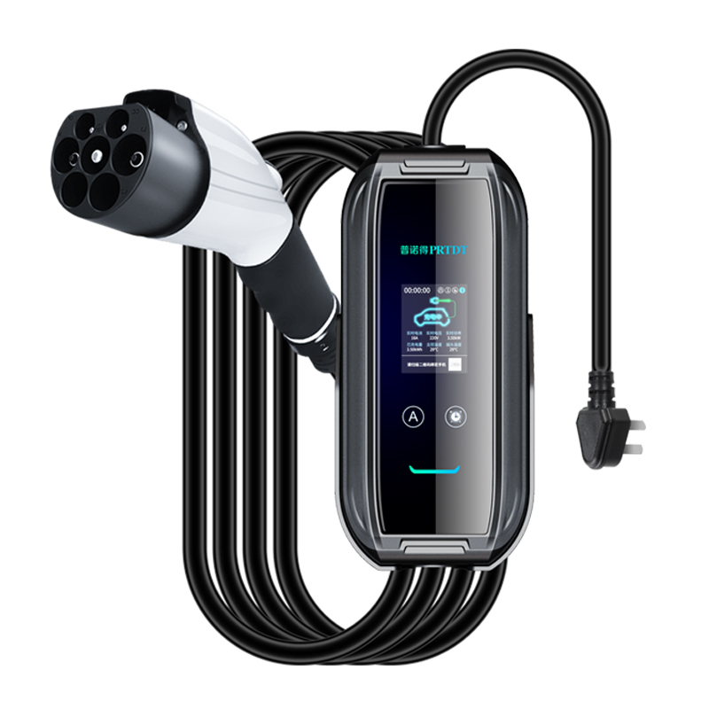 下面我来以普诺得16A3.5KW和32A7KW两用这款充电器做一下介绍。这款充电器配有16A和32A两种接头。