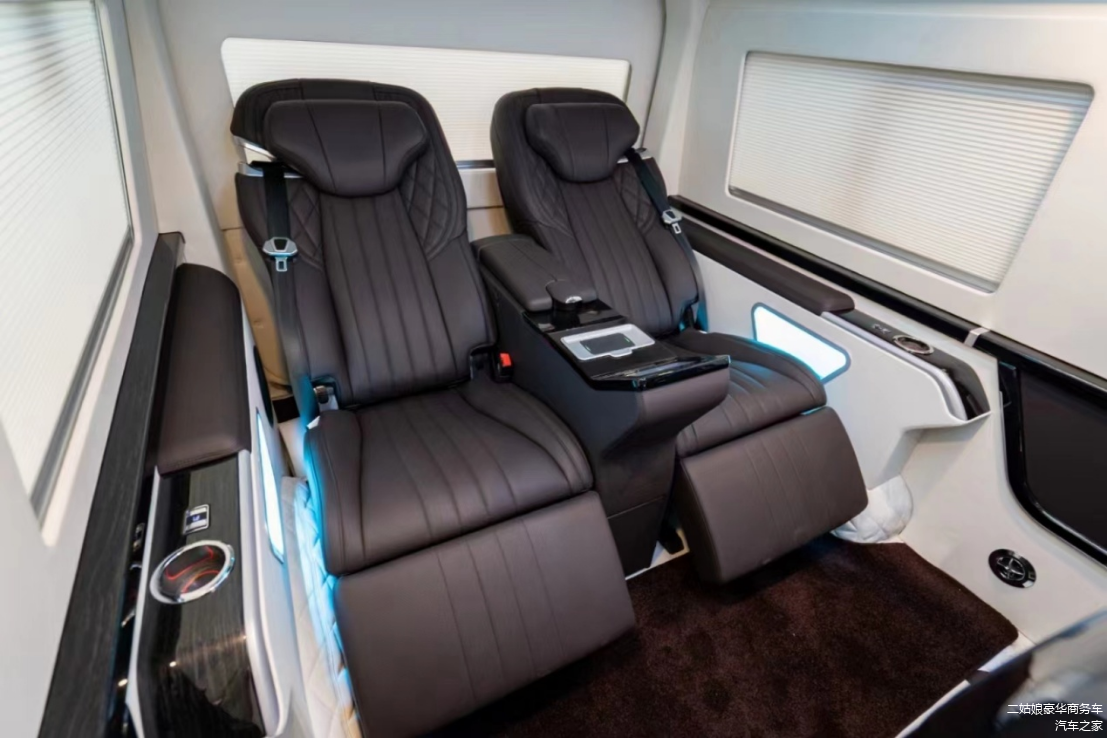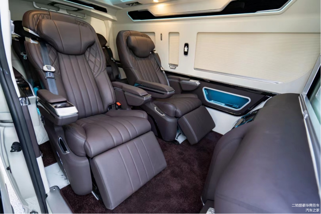 中排配备了两张豪华的航空座椅,整体造型与埃尔法蒙娜丽莎版的相似,带有通风、加热、按摩、空气腰托等功能,通过扶手上的触摸屏和侧面的机械按钮控制调节座椅的姿态。