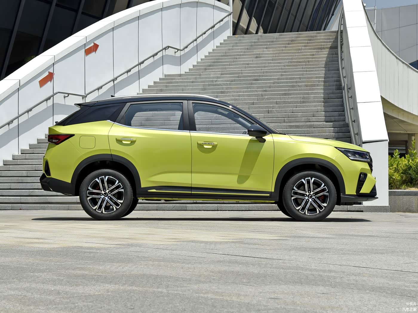 侧面采用了悬浮车顶设计,高配车型带有车顶行李架,黑色的后视镜很漂亮,腰线上扬,增加了一些气势。高配车型的17英寸轮毂采用了双色铝合金轮圈,质感比较出众。