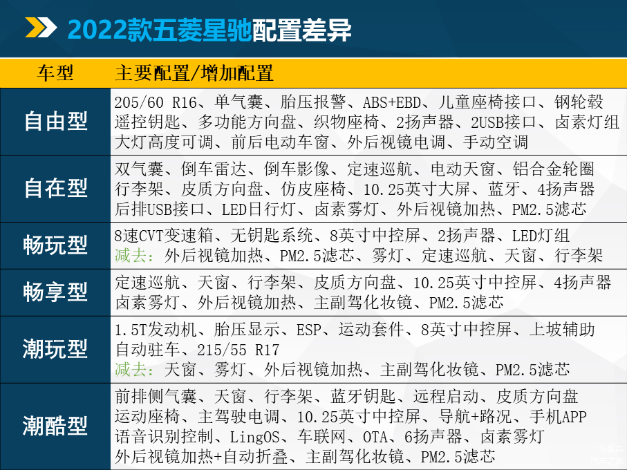 车型还是比较全面的,1.5L手动挡车型两款——自由和自在型,1.5L自动挡车型两款——畅玩和畅享型,1.5T自动挡车型两款——潮玩和潮酷型。