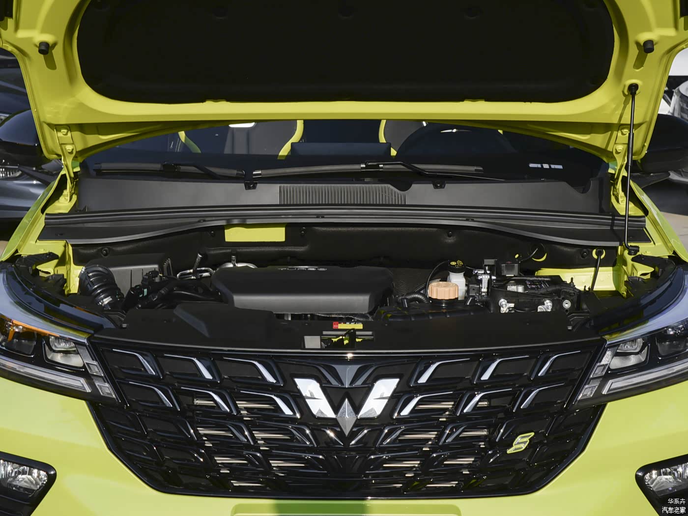 五菱星驰很像家族大哥五菱星辰,前中网采用了融合式设计,阵列格栅很漂亮,与银色的品牌标识契合度很好。高配车型会提供LED灯组,并带有卤素雾灯,带有大灯调节功能,功能还是很完备的。