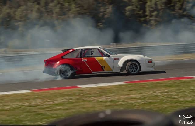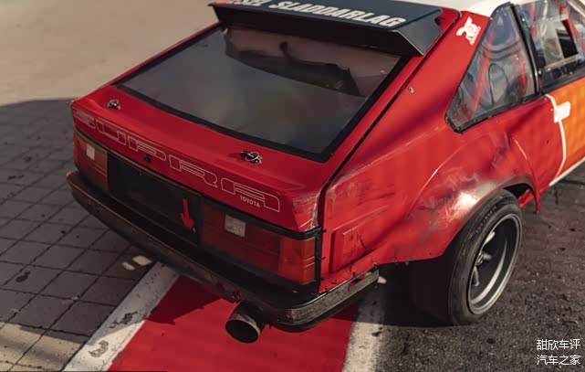 这台赛利卡生产于1985年,和笔者同龄,外观上为丰田TRD标准的红白色,加上橙色的点缀,本身作为漂移车来说,车主保留了车上很多的“战损”,让人一眼看去饱经风霜,又不失动感,一看就是一台有年头的老车了。