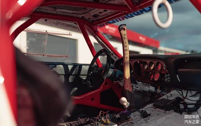 车内最有特色的,莫过于漂移最常用的手刹杆了。对,你没看错,这就是一个斧子手柄,毕竟是一台追求乐趣的漂移车,用着顺手才是最主要的。
