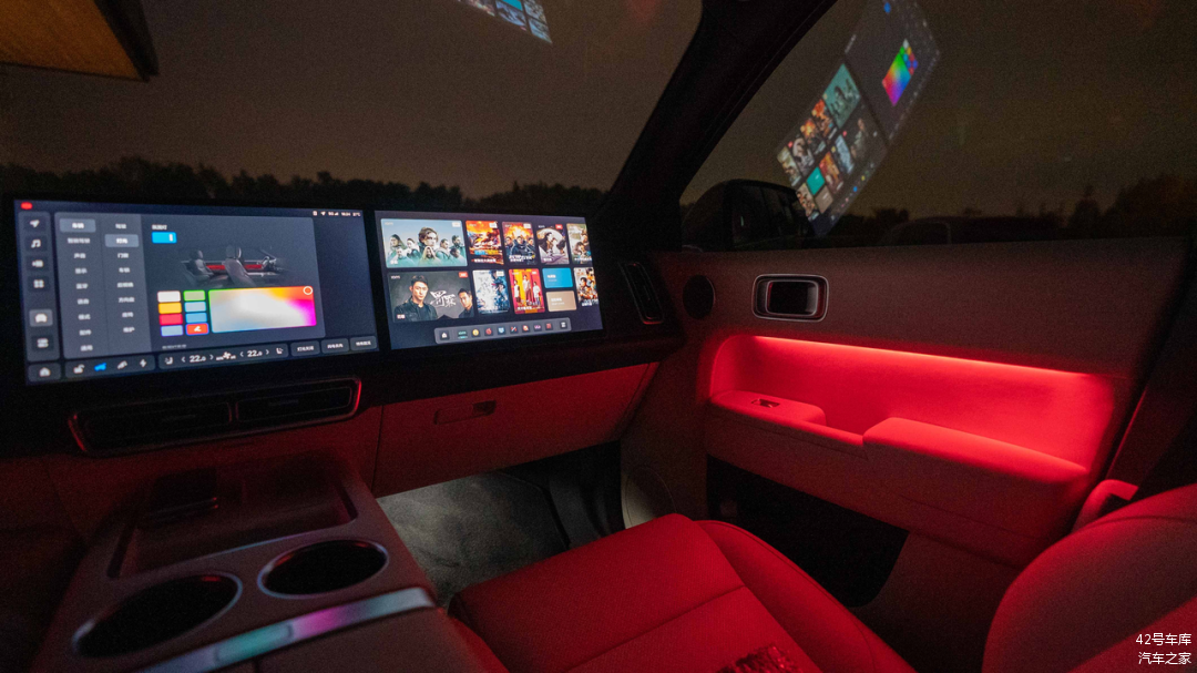 在 L8 上我们体会到了三屏同步播放同一画面的乐趣,从实际场景出发,其实这种情景最适合在车里唱 K 了,每位「灵魂歌手」都可以拥有一块自己的提词器。