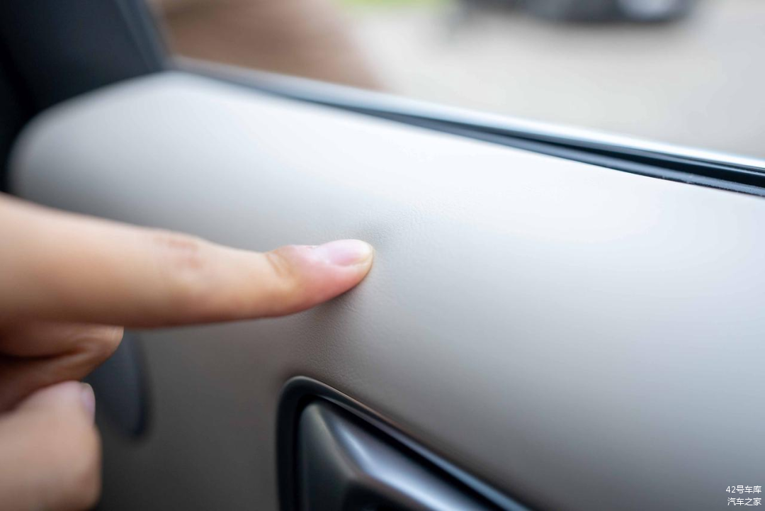 我这里说的包覆是指整块门板全部都用 Nappa,所以无论在何种状态下,手摸上去的触感,都是非常细腻的。甚至理想还在这块 Nappa 下做了海绵填充,使得这种触感还有「厚实」的感觉。