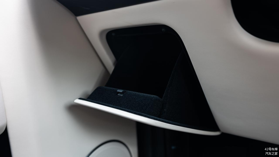 对于后排的两个储物槽,我们想象的场景:是最下方的储物槽可以用来放移动设备的数据线,而上面开放式的储物槽可以用来放手机或其他高频使用的物品。