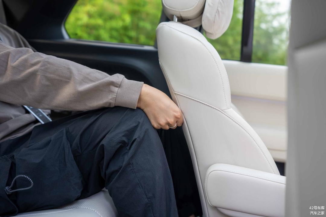 首先最直接的乘坐感受是:L8 的坐垫并没有更薄,整体会比第二排座椅略硬,但久坐并不会感到累。同时座椅靠背的调节角度比 ONE 更大,意味着坐姿可以更躺,靠背接触面积感觉上也更宽厚。