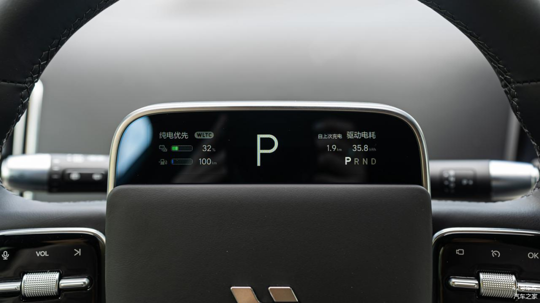 屏幕左侧会显示驾驶状态、电量、续航状态,中间则是显示档位或速度信息,而右侧会显示行驶距离、电耗等信息。