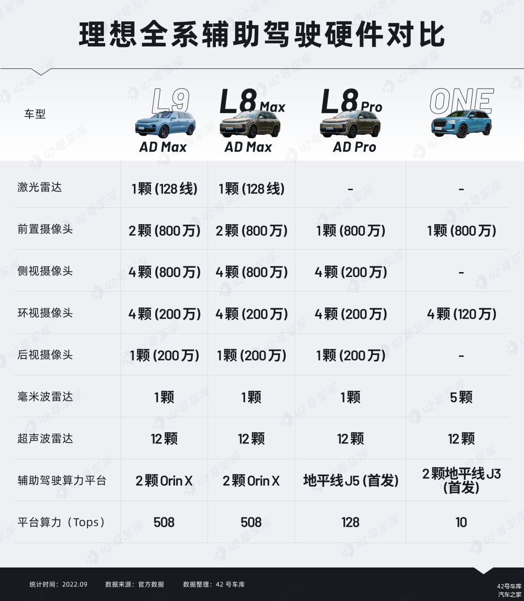 L8 Max/Pro 除了智能空间的差异外,还有辅助驾驶层面的硬件差异。在 L8 一款车型上,理想分成了 AD Pro 和 AD Max 两个版本。