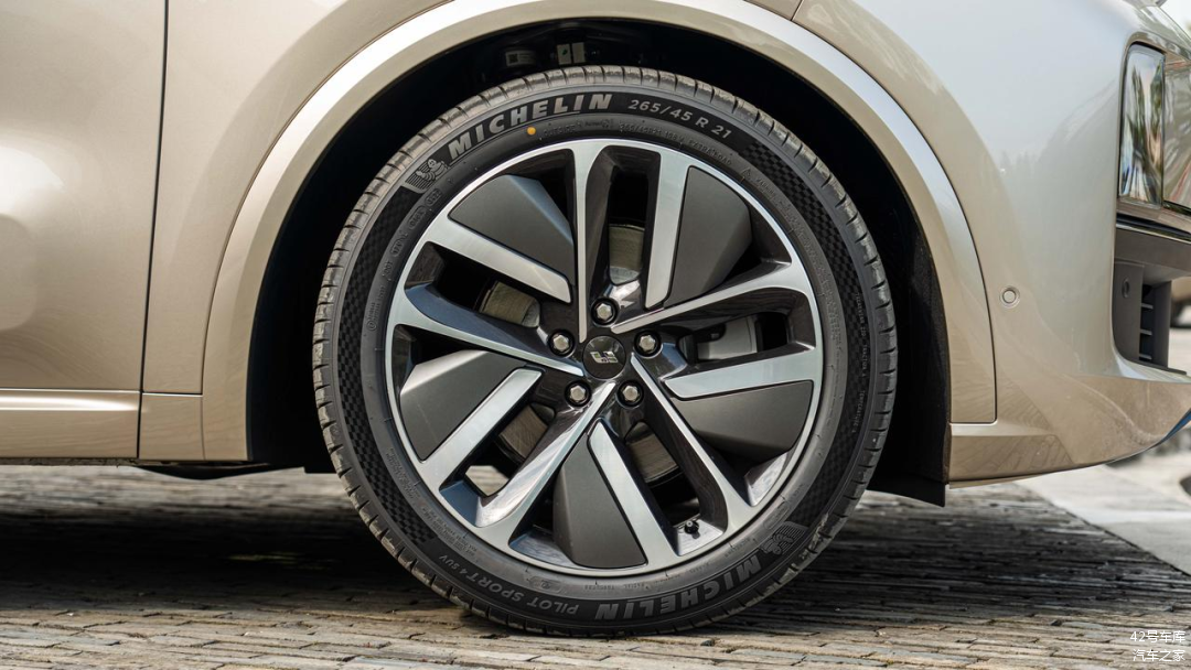 我们这次试的 L8 Max 也使用了 21 寸的轮圈,轮毂样式也和 L9 完全一样,都是花瓣样式。