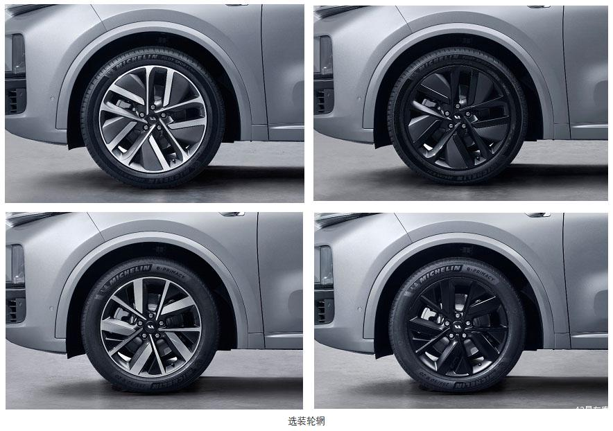 在之前的工信部数据中,我们看到了 L8 采用的是 20/21 两种不同尺寸的轮圈,也有银灰和黑灰两种配色供选。