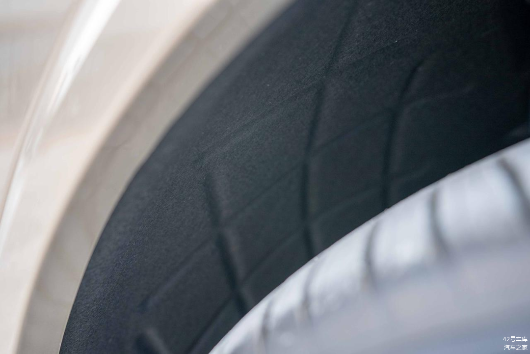 我们在拍摄轮胎时,还发现这台车的轮拱内衬的吸音棉材质,甚至还做了条纹。