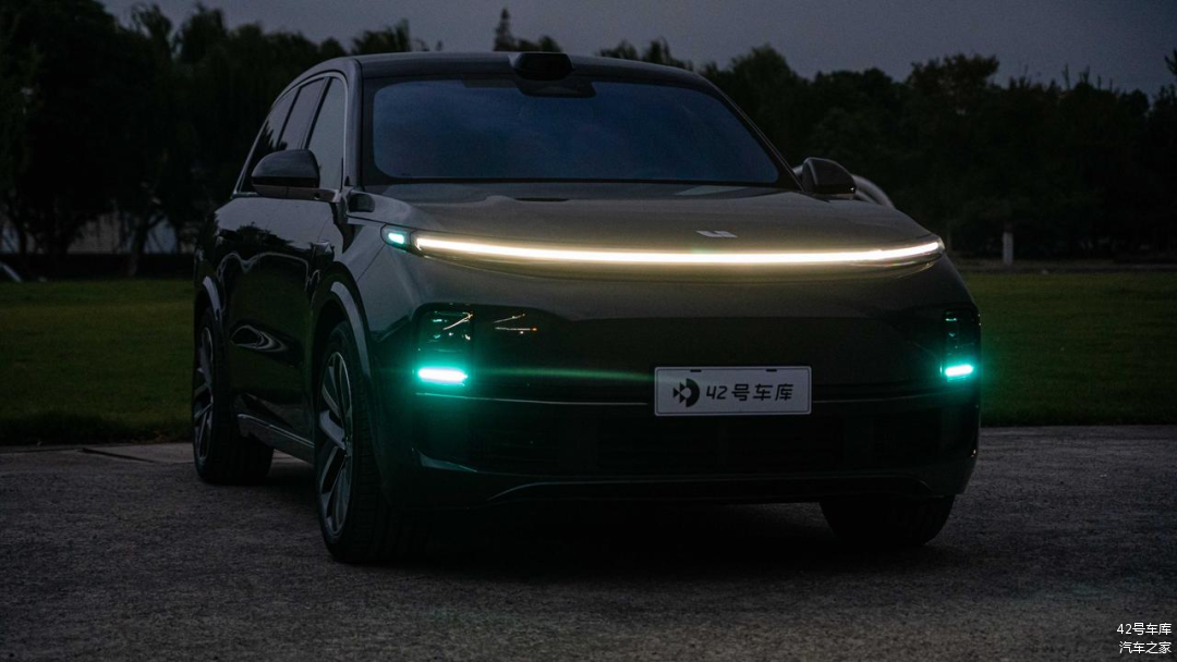 除了常规状态下各种电子设备拍摄没有断点外,L8 夜间观感也格外突出,当亮度很高的贯穿式灯带与湖蓝色的 ADAS 辅助驾驶指示灯同时点亮时,整车的辨识度拉满。