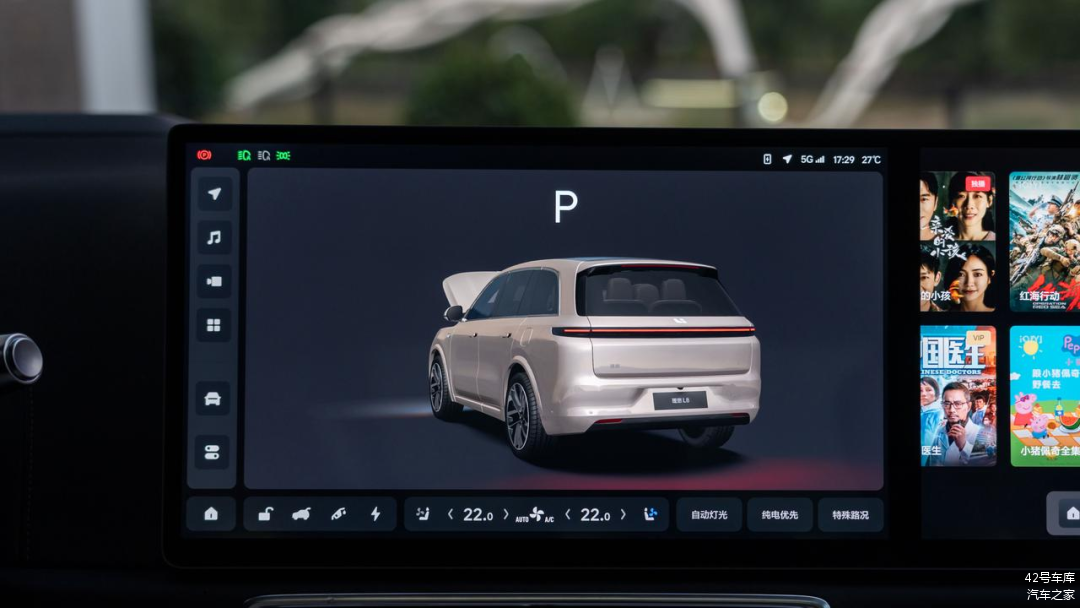 整体而言,在座舱方面 L8 Max 大部分功能与 L9 类似,只不过在扬声器的功率、屏幕材质上有所差异。