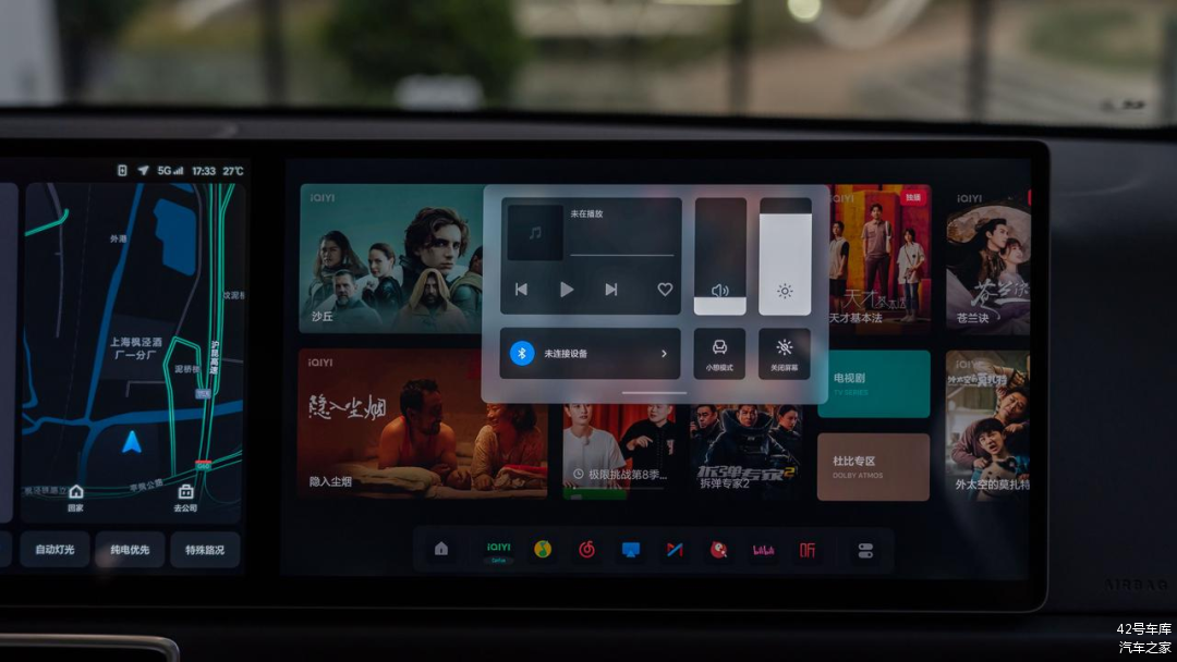 副驾屏的功能布置依然与 ONE 一致,主要是负责影音娱乐方面的控制。