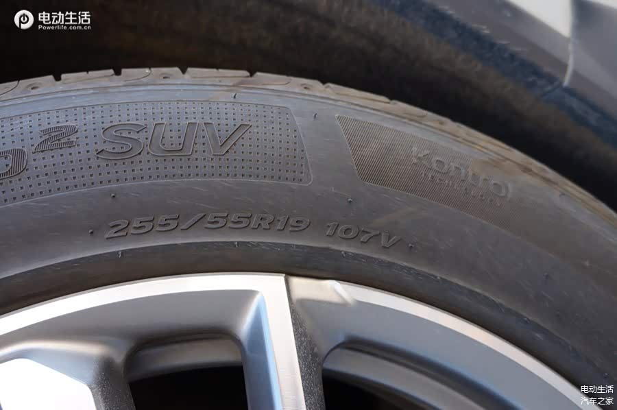 原厂轮胎为韩泰品牌255/55 R19尺寸107V,是一款专为SUV而生的特供胎,2020年年底生产,型号为Ventus S1 evo2。给我感觉,该轮胎耐磨性表现还不错,台面较宽,附着力较强,但舒适性和声噪方面控制的不是很好,网络售价为946元左右。