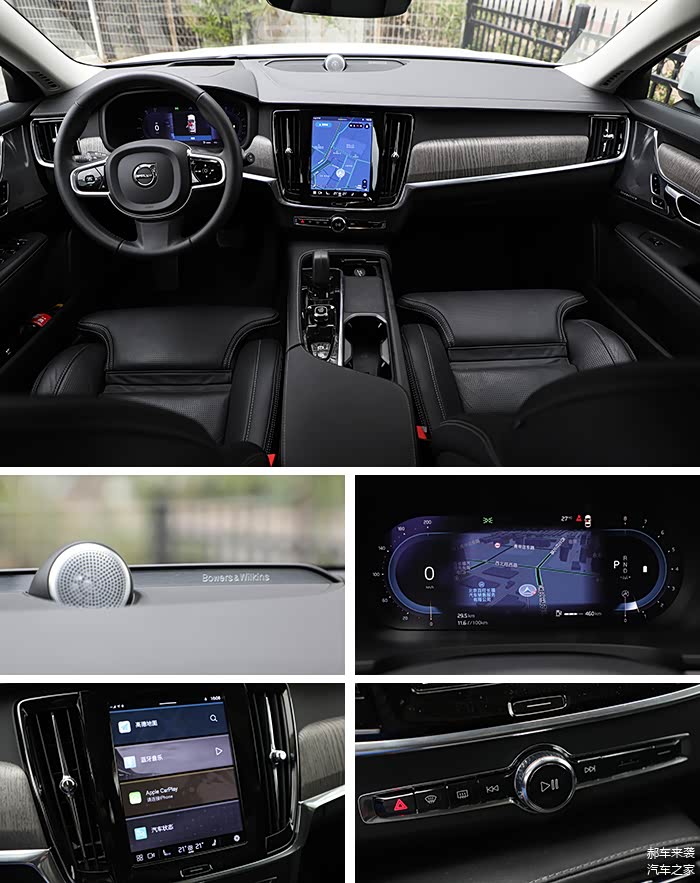 内饰风格同样透露着浓浓的沃尔沃味道,新车将真皮、木料以及金属元素等真材实料巧妙地融为一体,值得您细细品味。12.3英寸全液晶仪表盘+9英寸中控大屏涵盖了诸多科技安全配置,其中宝华韦健(B&W)品牌音响称得上是区分高低配最明显的配置之一,12声道放大器、19个独立扬声器和相当有逼格的金属扬声器面板使整车提升了一个档次。