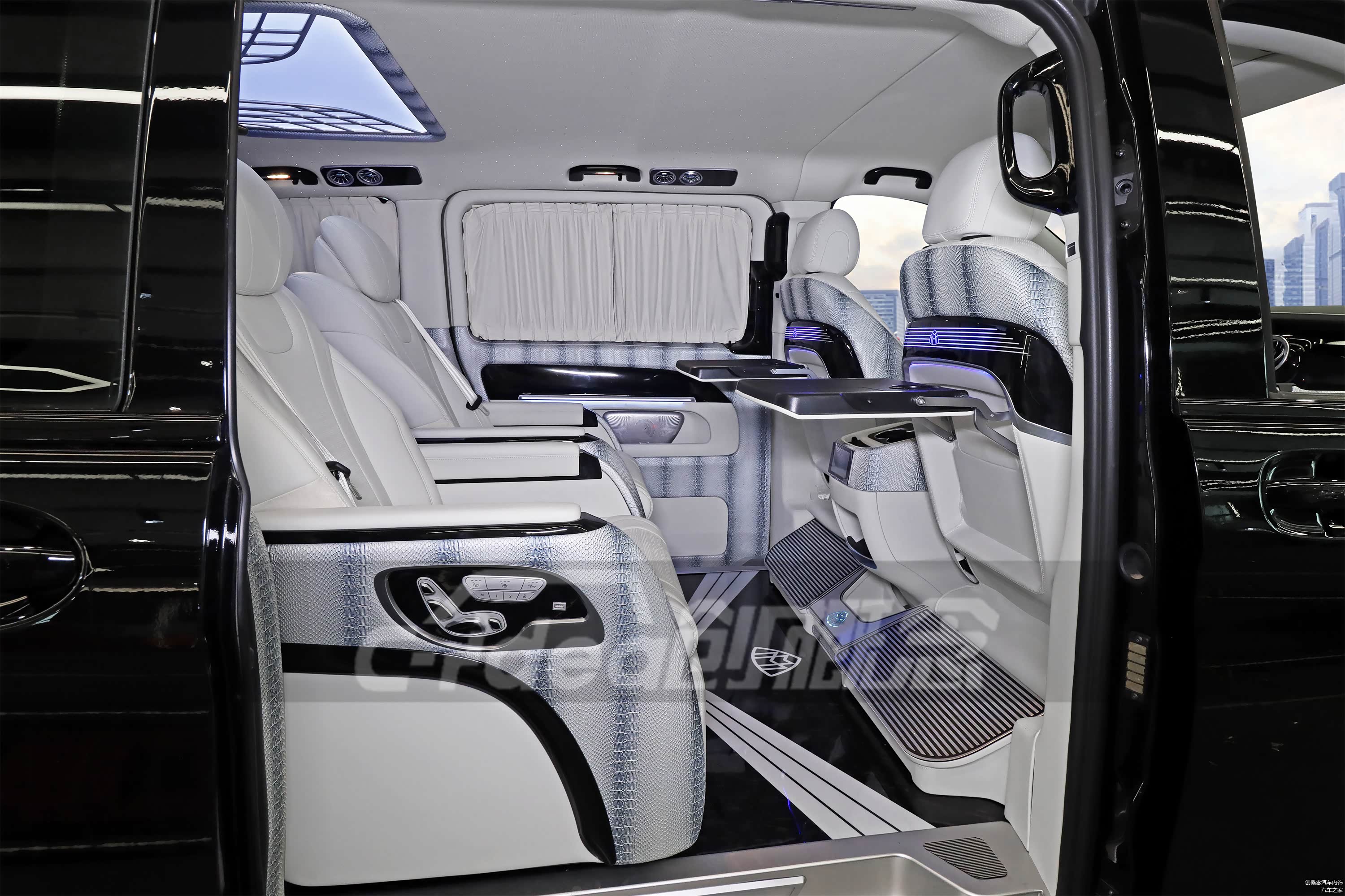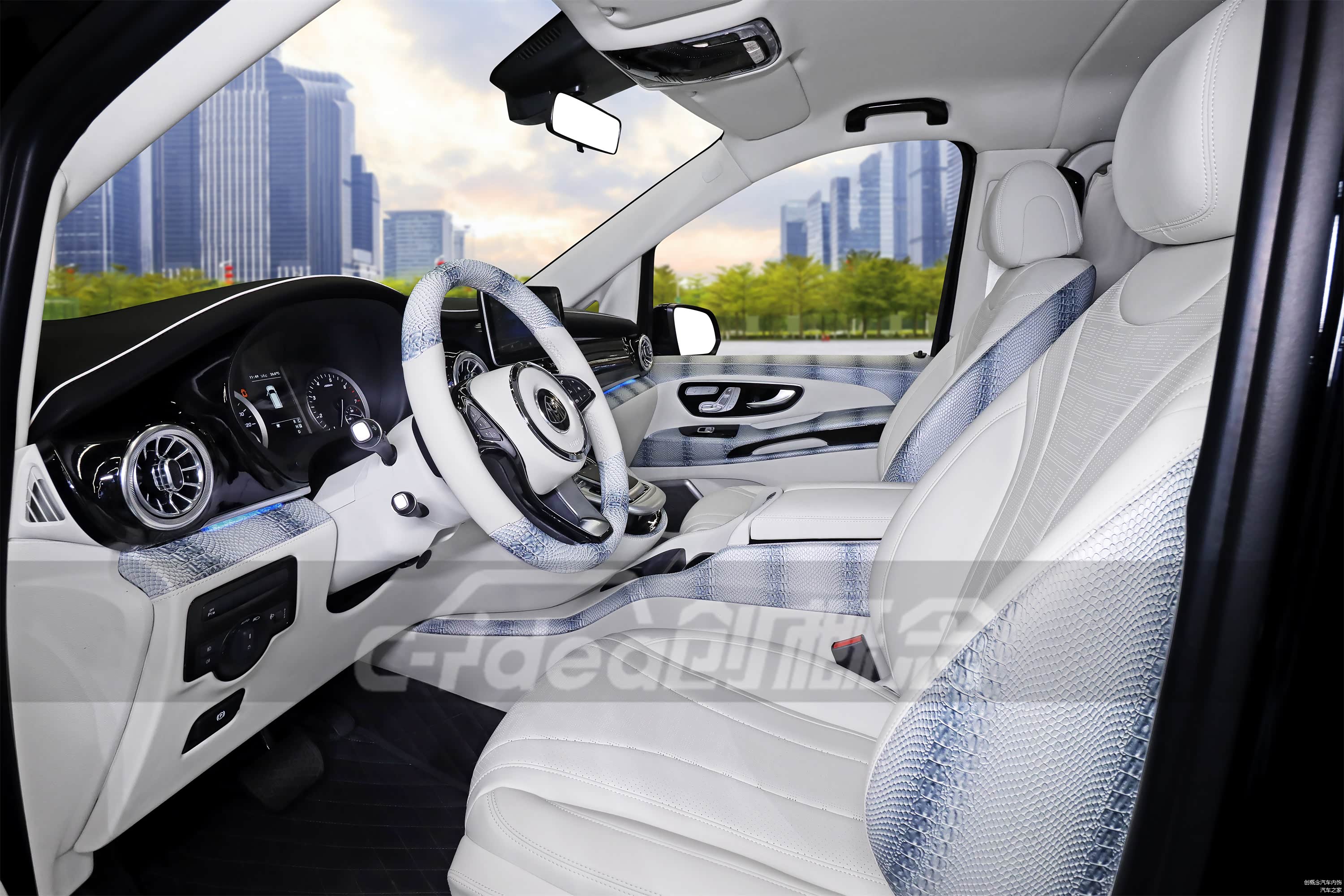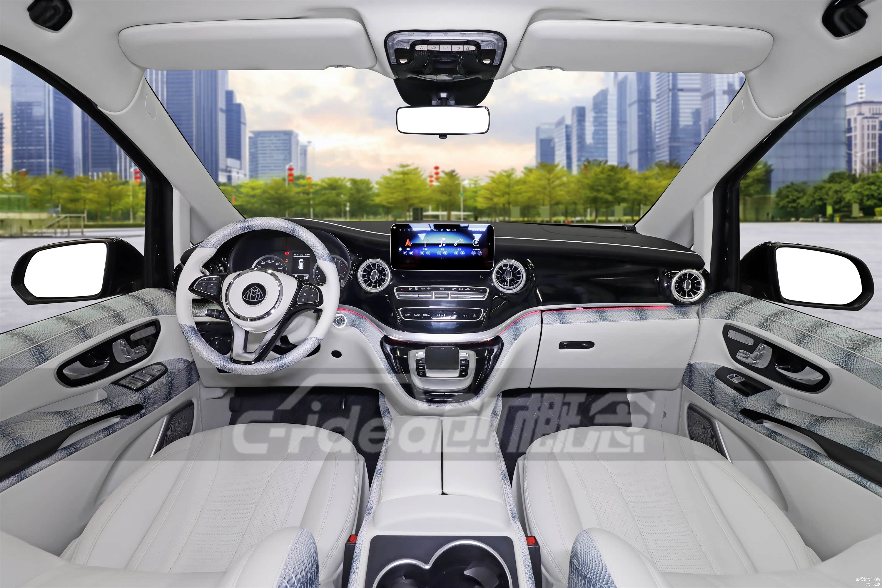 奔驰威霆(图片 | 参数 | 询价)改装!整车采用NAPPA皮搭配,看起来时尚优雅,高端纳帕皮整车包裹,质感的细腻用指尖轻轻触碰就能感受得到。仪表台双色真皮包裹,豪华一体式桃木镶嵌装饰,旋涡式出风口,加装360°全景影像。