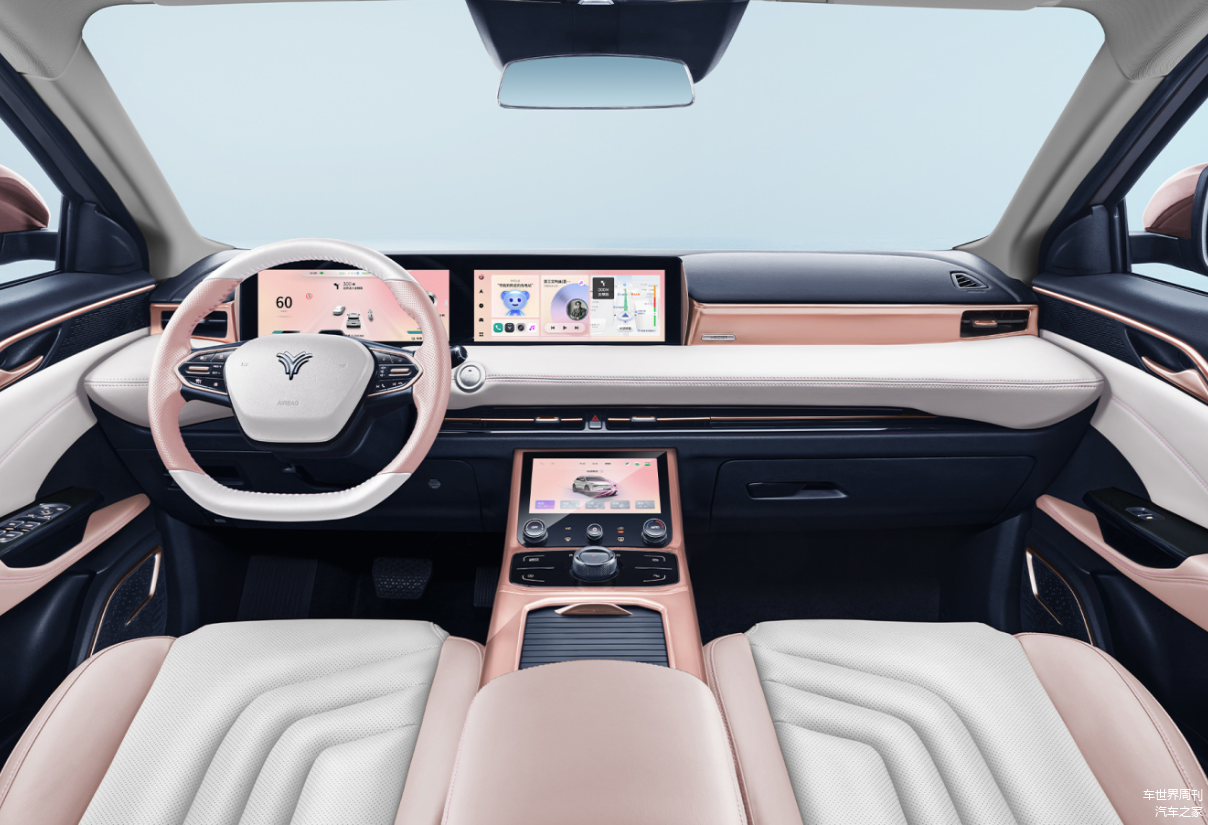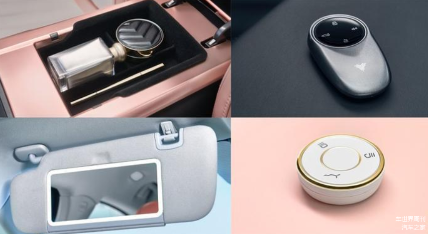 进入车内,新车整体布局与现款哪吒U基本保持一致,内饰配色有典雅黑、暗夜机甲黑、星钻魅影粉供选,不同的主题风格也给人带来不少新鲜感,中控区域匹配有真皮多功能方向盘、双12.3英寸悬浮屏、电子式旋钮换挡等。此外,新车在细节上也做了不少提升,星钻魅影粉主题增加了大尺寸的化妆镜、中央扶手化妆盒以及精致的圆形车钥匙,这在同级别车型并不多见,比较讨女性消费者喜欢。