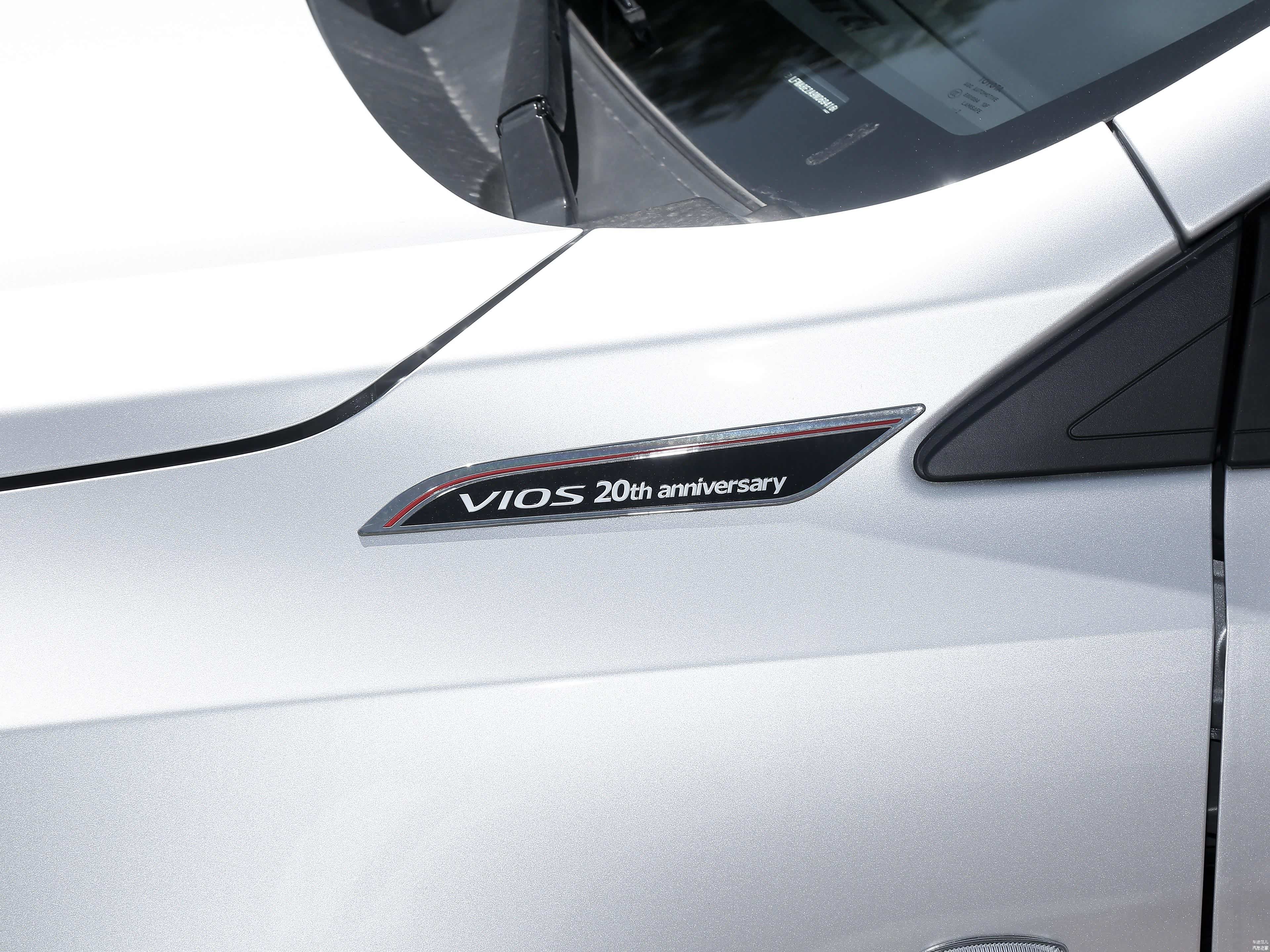 在前翼子板的位置,威驰20周年纪念版车型还有一块专属标志,“VIOS 20th anniversary”的英文铭牌似乎在提醒我们,威驰在诞生20年的时间里吸引超百万中国消费者所依靠的独特魅力所在。