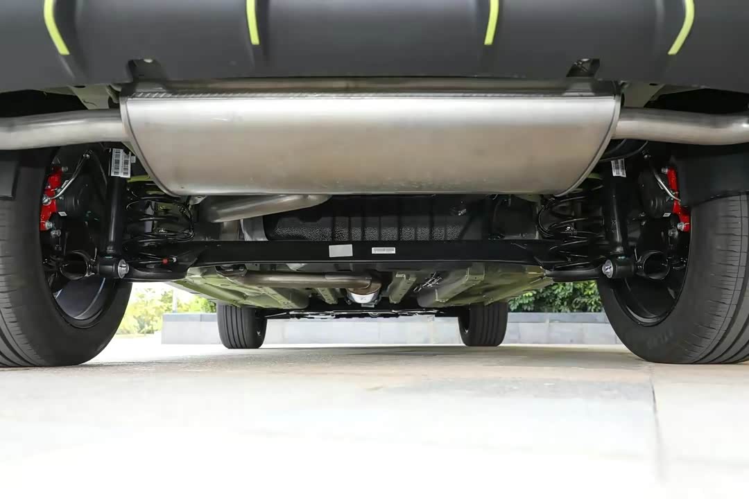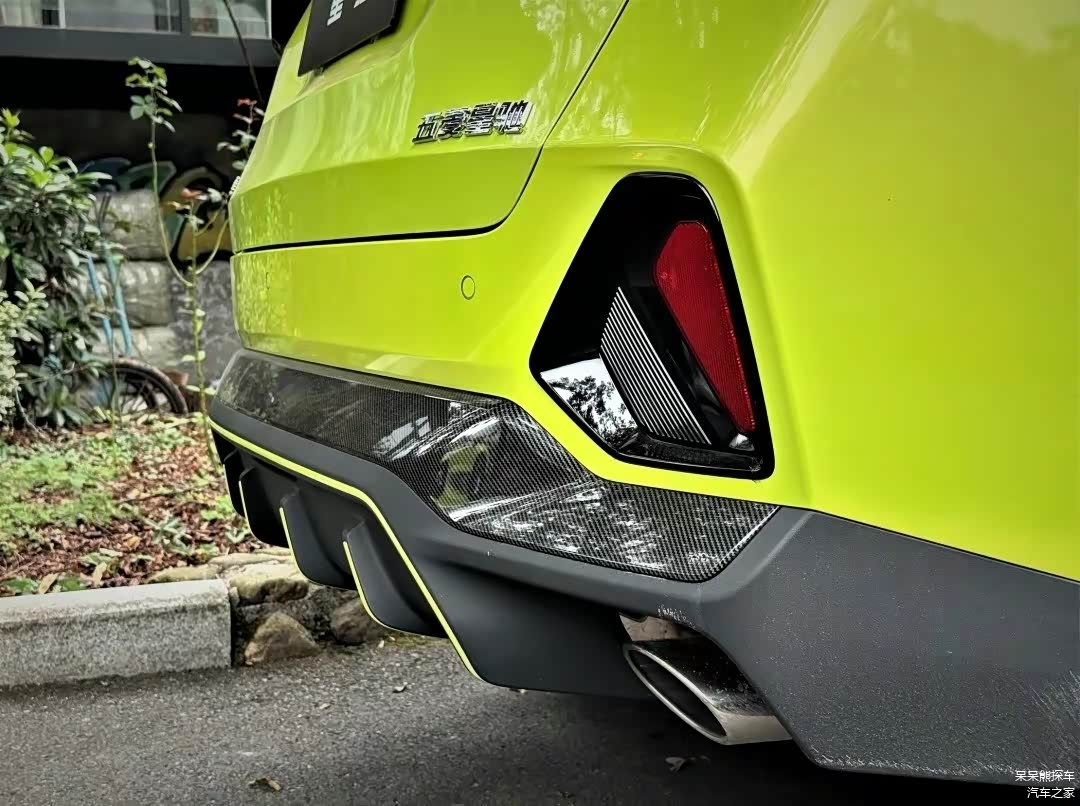 五菱星驰尾部造型走的是运动风格,车顶位置配备类似小鸭尾的扰流板,尾灯组采用了熏黑式设计,营造出强烈的运动氛围。尾部下方还有扩散器样式的装饰板,双边双出的排气口设计,效果相当拉风,有一种性能车的既视感。