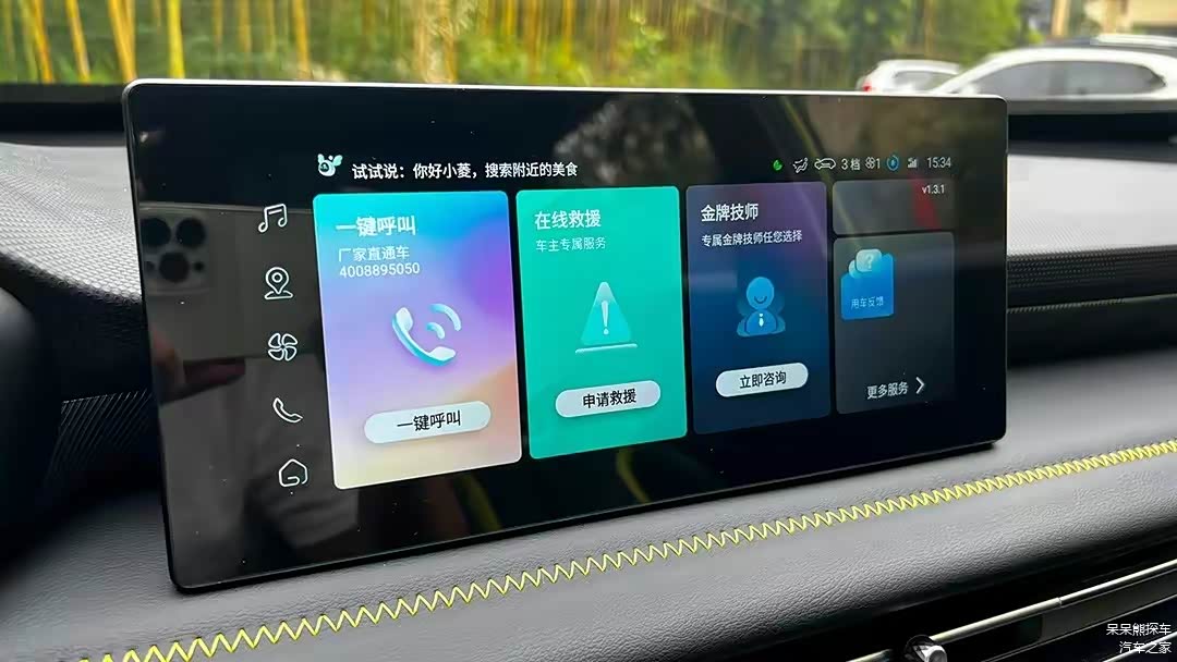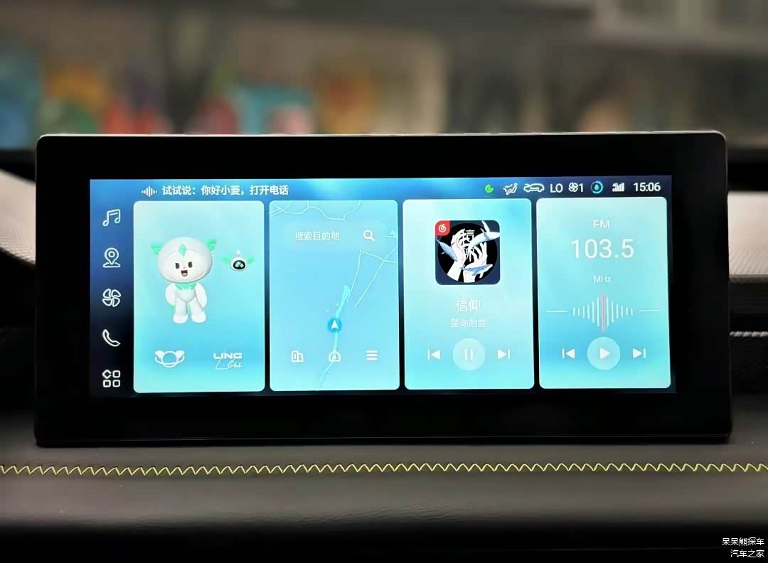 车内配备了3.5英寸液晶组合仪表盘及10.25(8)英寸悬浮中控屏,搭载Ling OS灵犀系统,拥有小五小菱专属IP形象,支持在线导航、语音识别功能、自定义唤醒、酷我音乐、网易云音乐及喜马拉雅电台等功能,给用户提供一定的在线娱乐信息。从实际体验来看,车机系统流畅,滑动操作几乎没有卡顿。