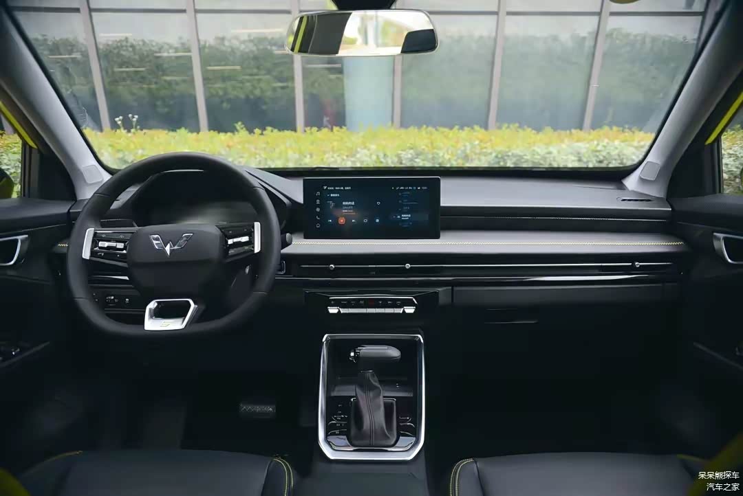 在内饰方面,五菱星驰内饰采用了对称式设计,中控台处采用了带纹理饰板、仿皮包覆、立体纹路塑料饰板以及贯穿式出风口的设计,在中控台和门饰板上还采用了黄色的缝线设计,让车内更显青春与活力。平底式方向盘搭配飞机推杆式挡把造型,前方有拨片造型的实体按键,能让人感觉到在设计上的用心。