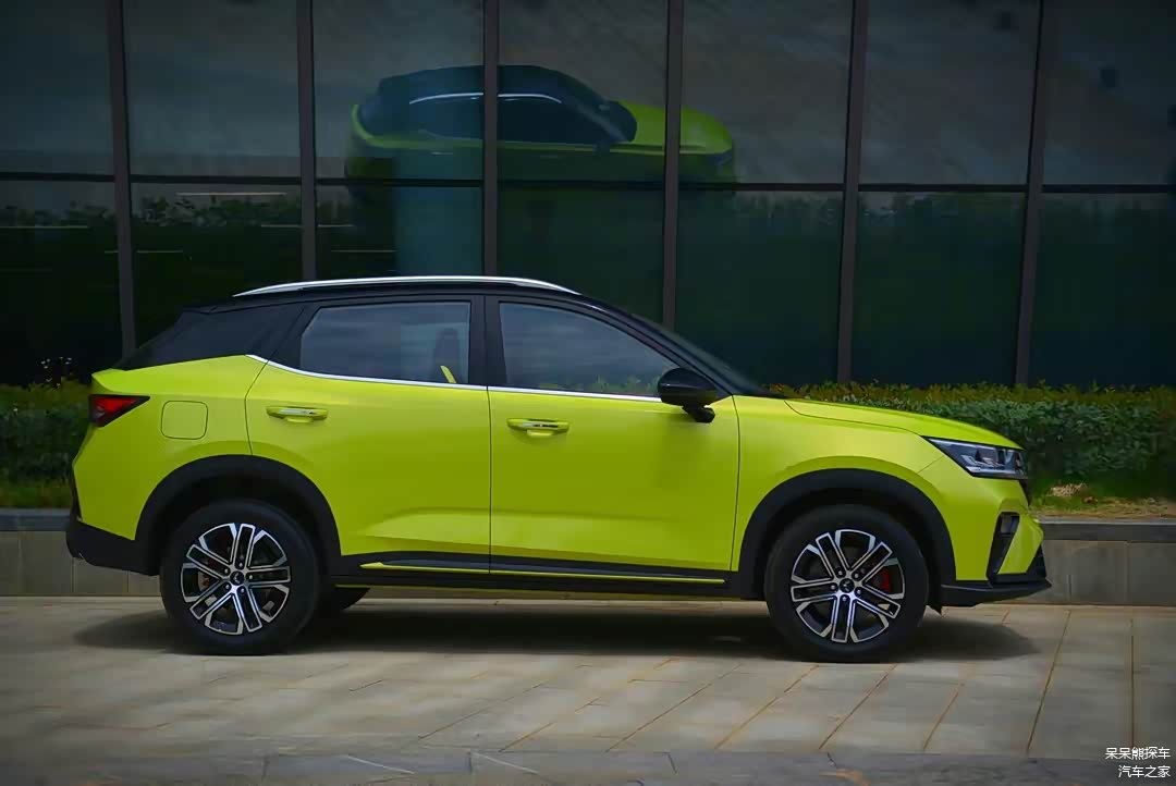 五菱星驰车侧采用了悬浮式双色车顶,而且车窗下沿有明显的上扬线条,还加入了银色镀铬修饰,后视镜放置到车门上,这样的设计看上去显得更精致。仿碳纤的车门下部饰板以及17英寸铝合金轮毂,酷炫的红色卡钳,提升了运动氛围。车身尺寸为4350(4365)*1750*1610(1630、1640) mm,轴距达到了2550mm,从数据上看整车的比例动感有型。