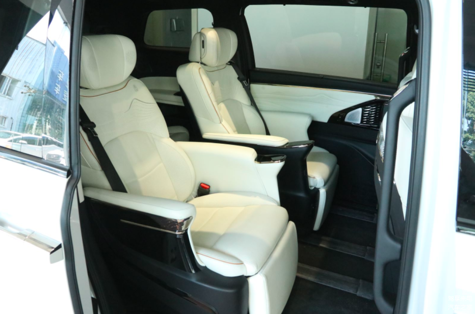 座椅选用苯胺顶级真皮材质包覆,手感细腻丝滑,搭配雅马哈大师音响,带来剧院级视听享受。座椅扶手前方还设计了一块液晶屏,方便乘客调节座椅功能。