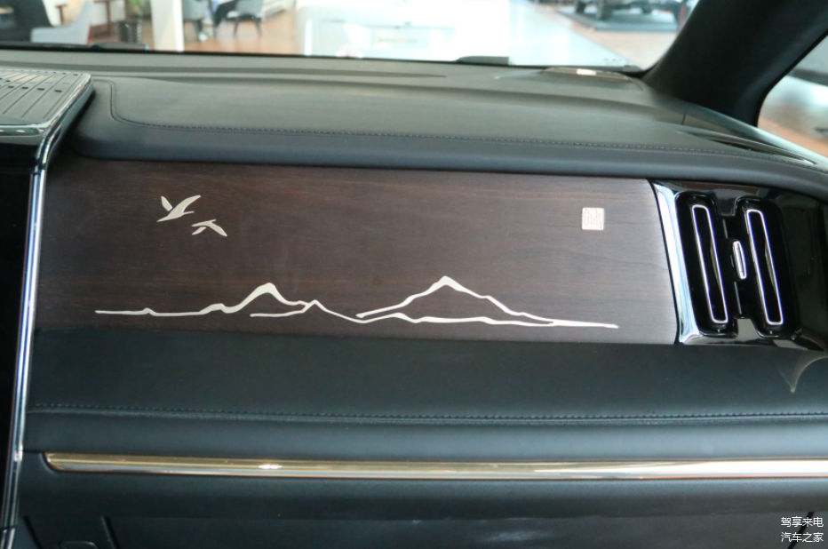 内饰采用一体环抱式座舱设计,在材质用料方面很用心,尤其在副驾仪表台选用木纹饰板,并辅以山水画、小篆朱文闲章,彰显人文气息,带有浓郁的中国风。