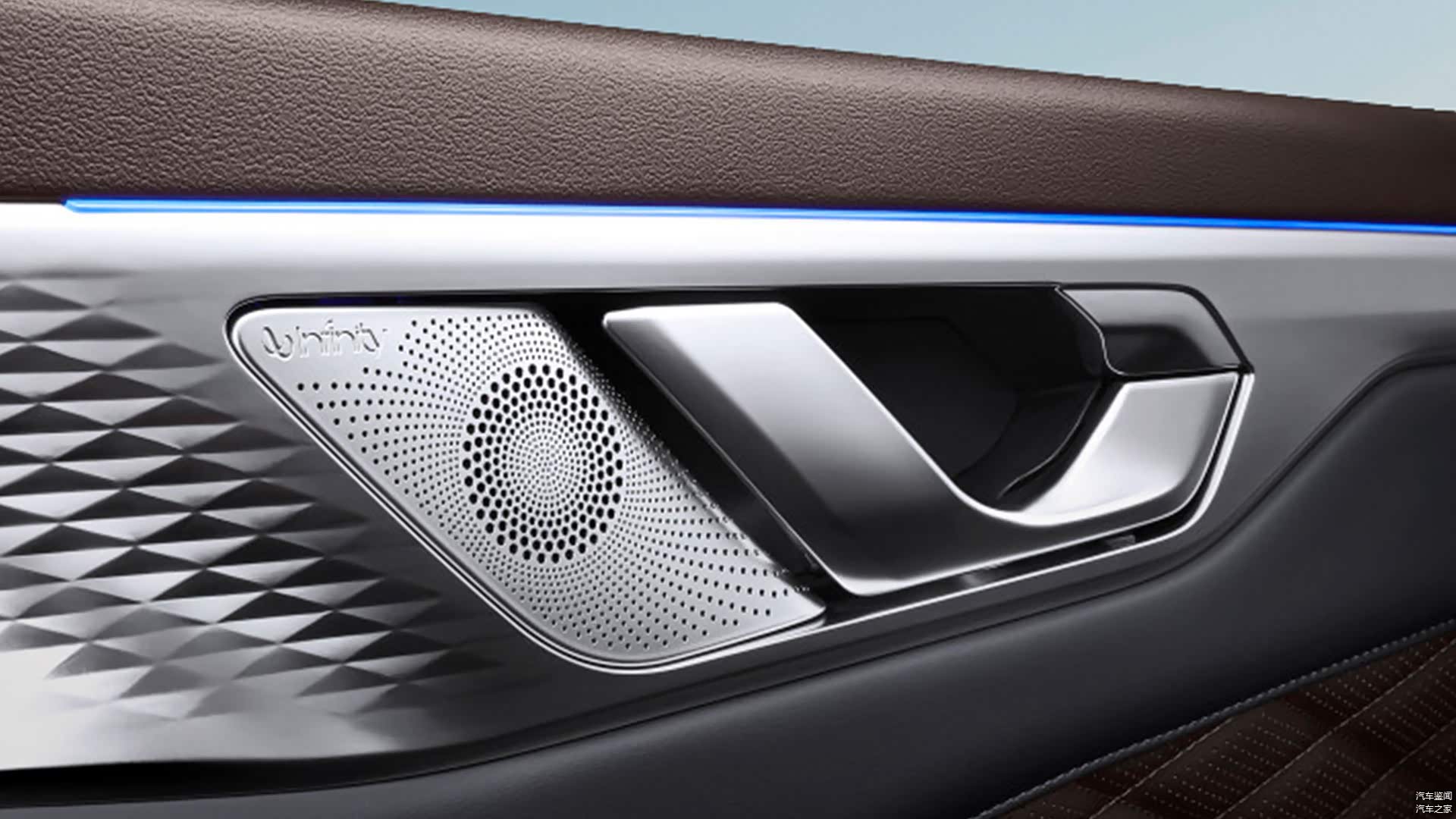 笔者认为摩卡DHT-PHEV内饰可以称之为“环抱式设计”,仪表台左右两侧和车门饰板接洽自然而流畅,融合度较高,座椅垫和车门饰板都采用了菱形花纹,座舱视觉效果的整体性表现相当好。