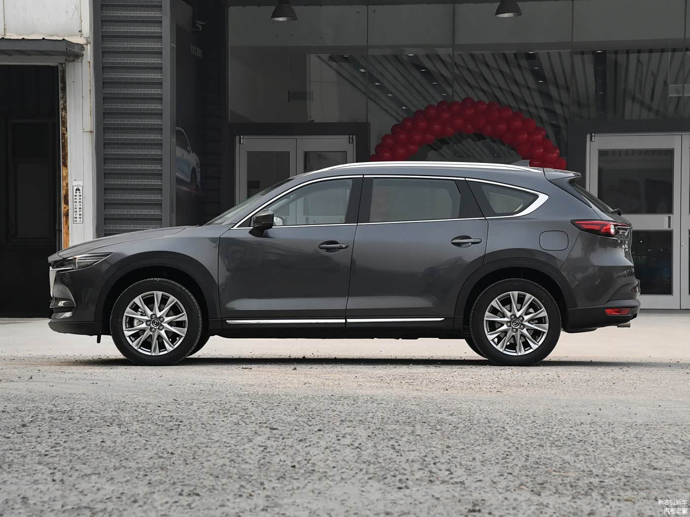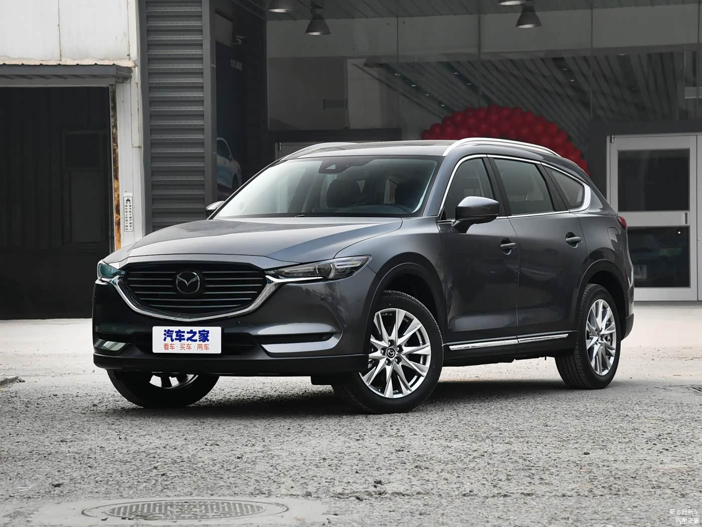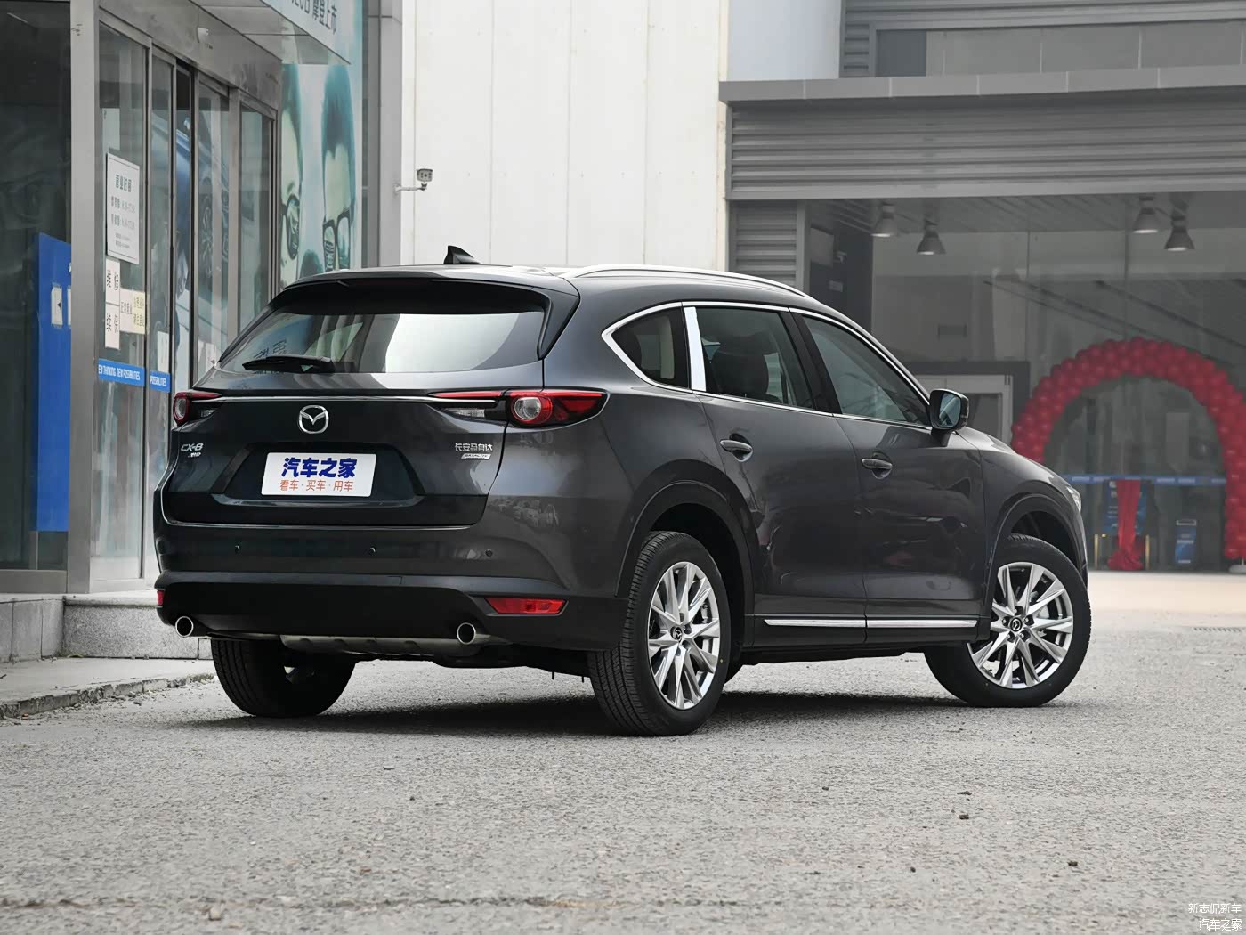 从侧面看车头才能看得出它的特点,整个车头有些前倾,要知道车头越垂直于地面,整个车子的气场就会越大,这一点马自达CX-8和自家的CX-5营造的效果一样;而后部硕大的后车门就看得出这台车的尺寸非同寻常,车身尺寸(长/宽/高)分别为4955/1842/1733mm,轴距为2930mm,定位为中大型SUV,如果你没有概念的话,途昂的长度为5052mm,但是CX-8的弱点就是车身宽度窄,对车内的横向空间影响较大。
