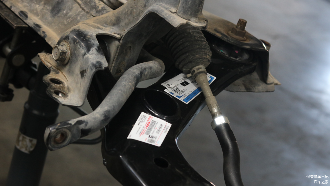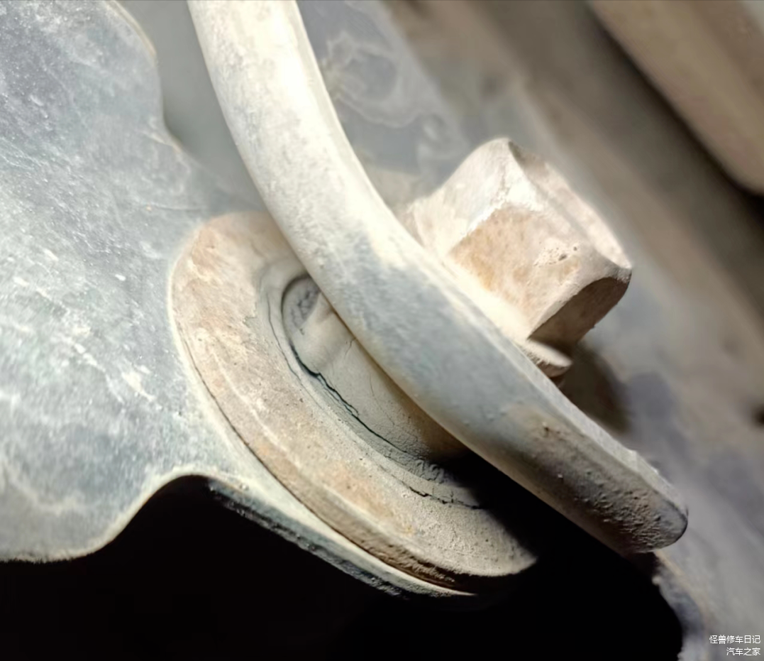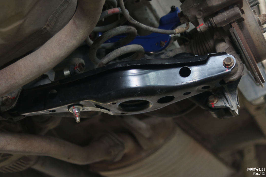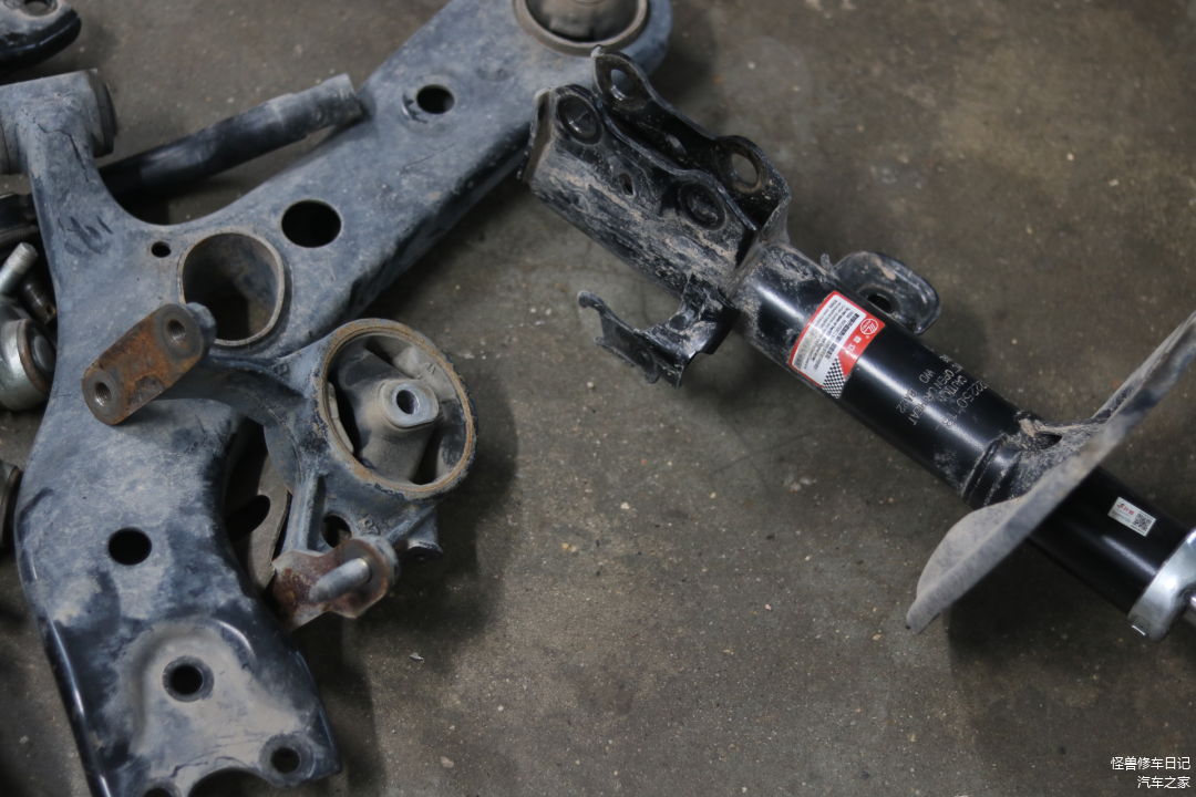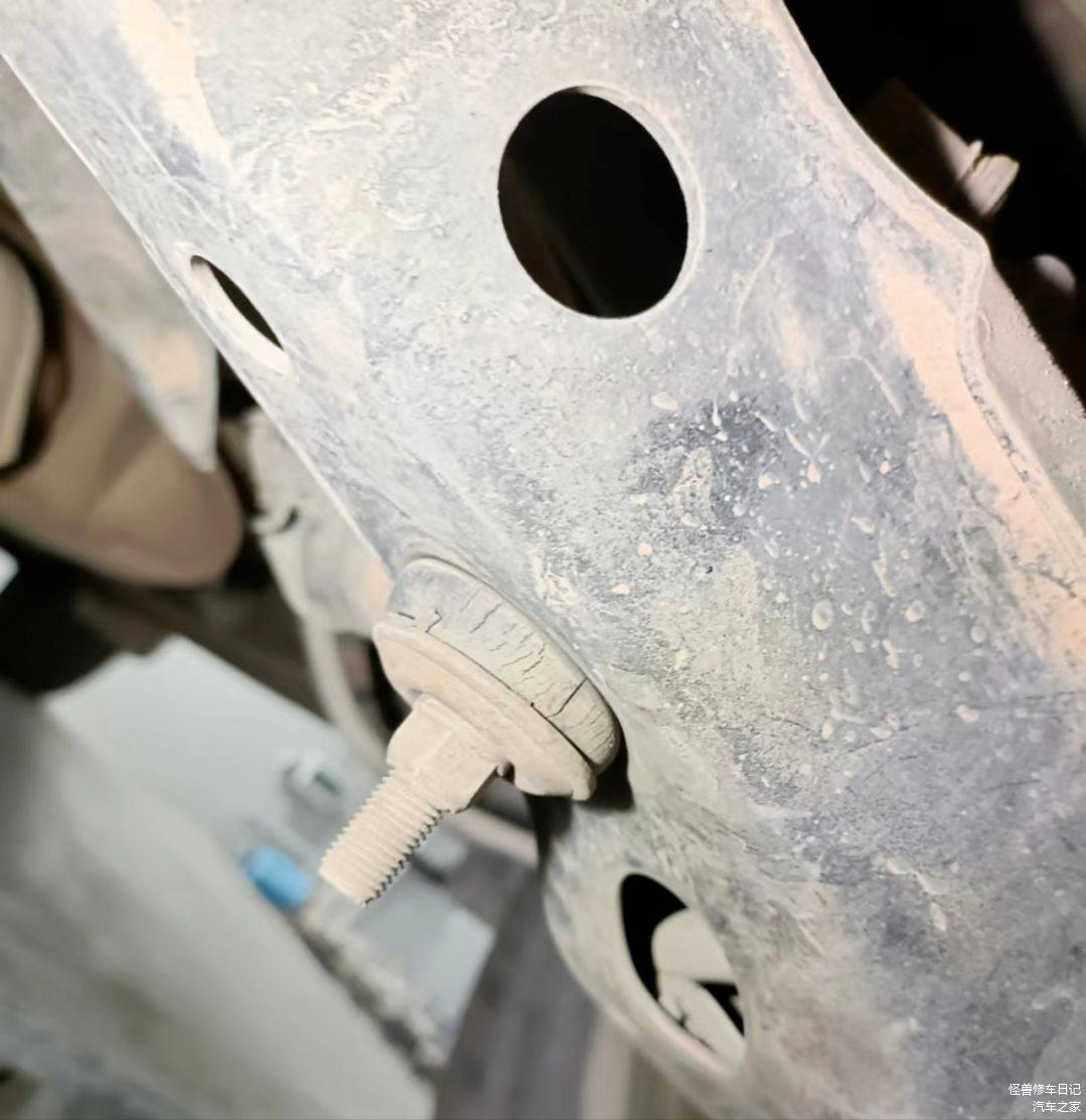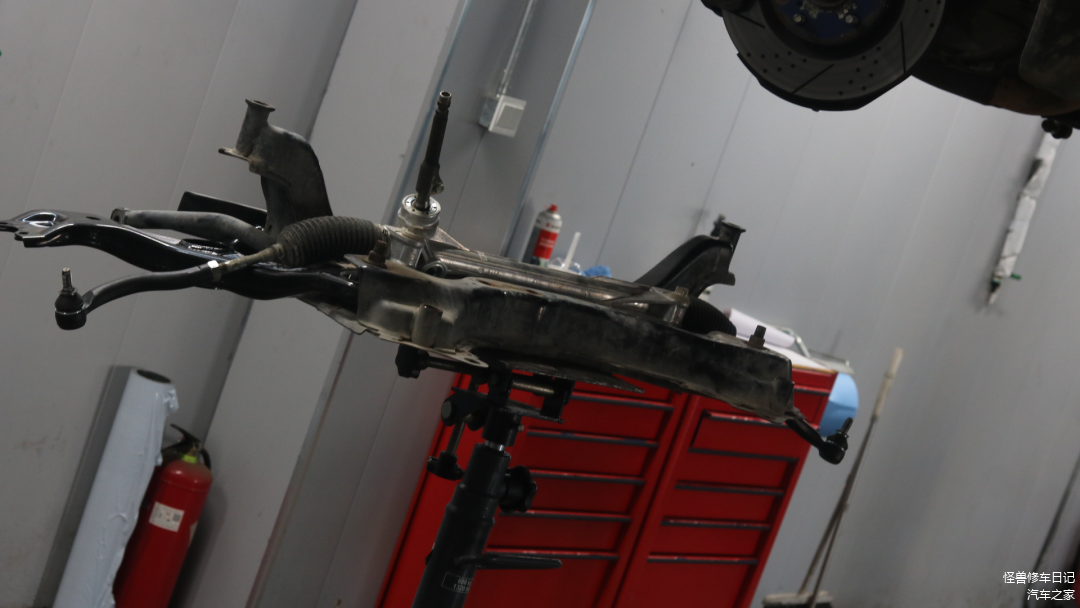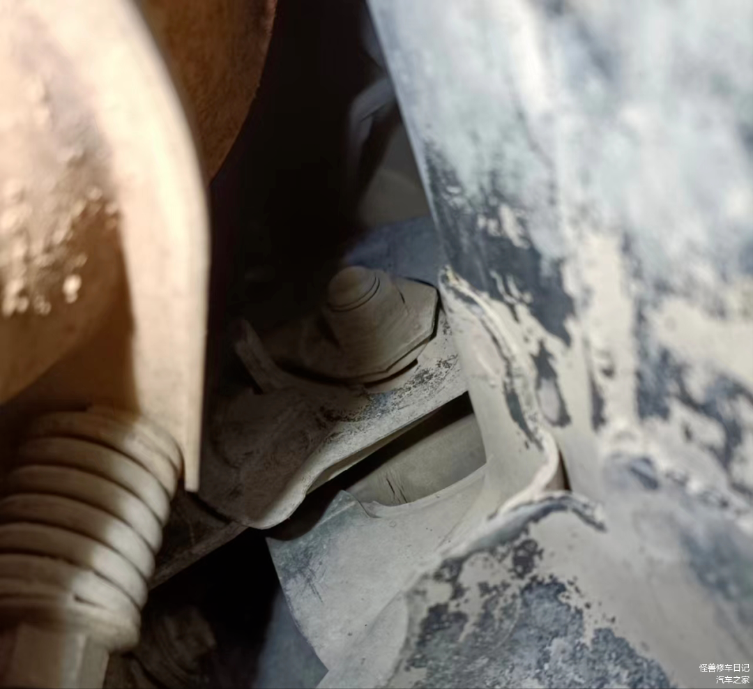 当时发动机支架不好拆装,直接把元宝梁卸下来了,也方便了整个前悬挂的配件更换。