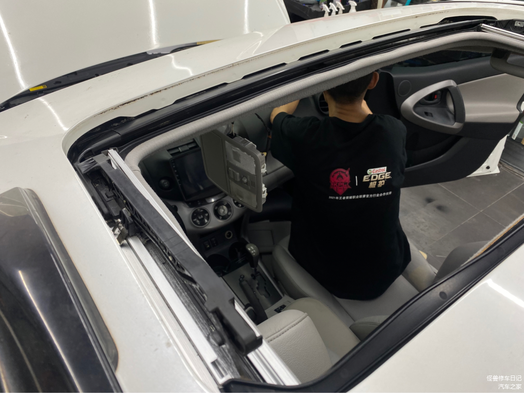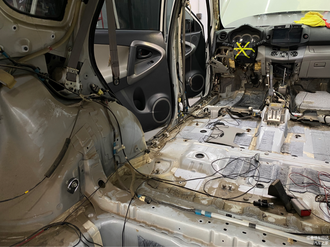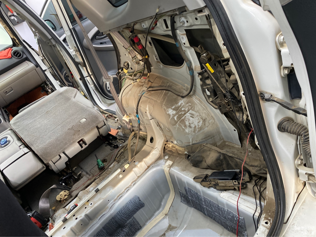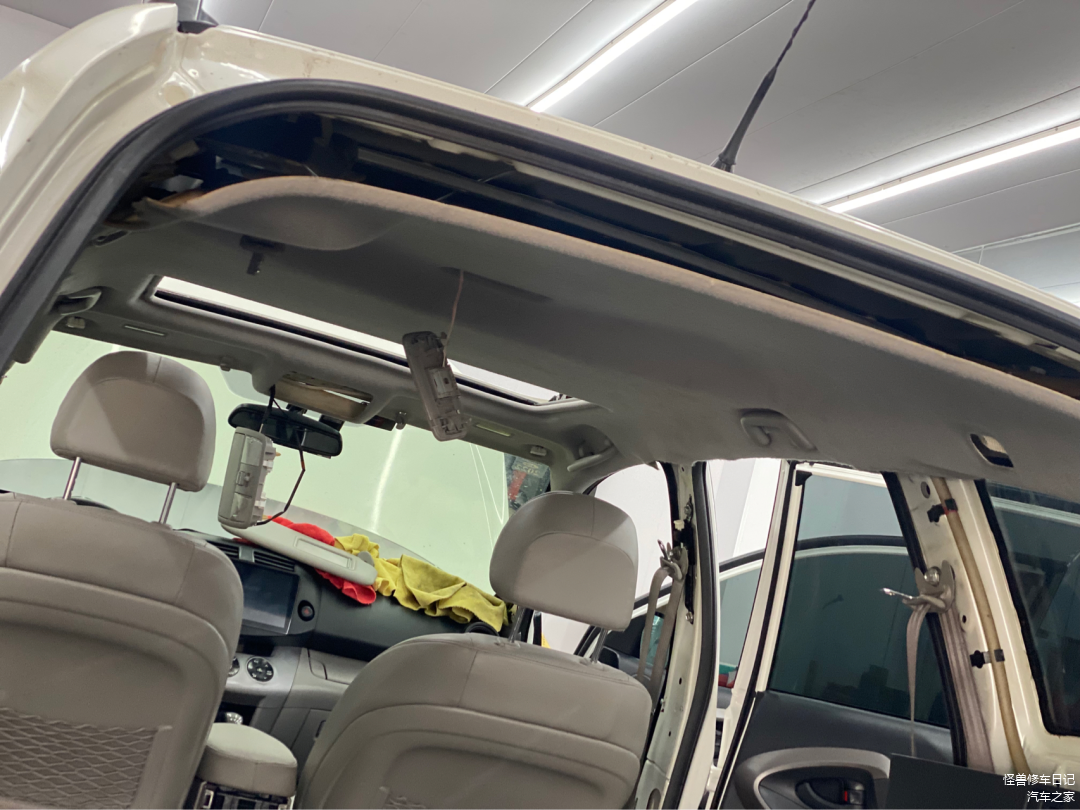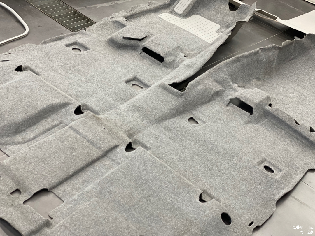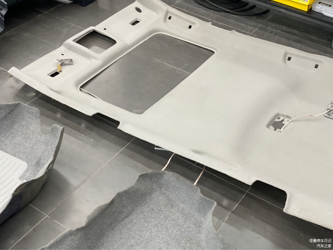 地毯、座椅、大顶、侧边覆盖件都拆了,这内饰确实够脏的,难怪味道那么大。