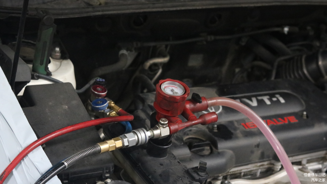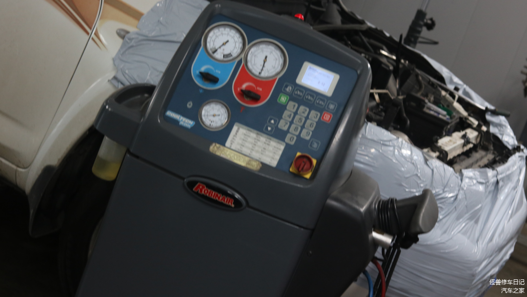 回收冷媒,测压更换。变速箱油液来之前换过了,咱们就不重复施工了,动力基础养护就这点工作,比较省心。
