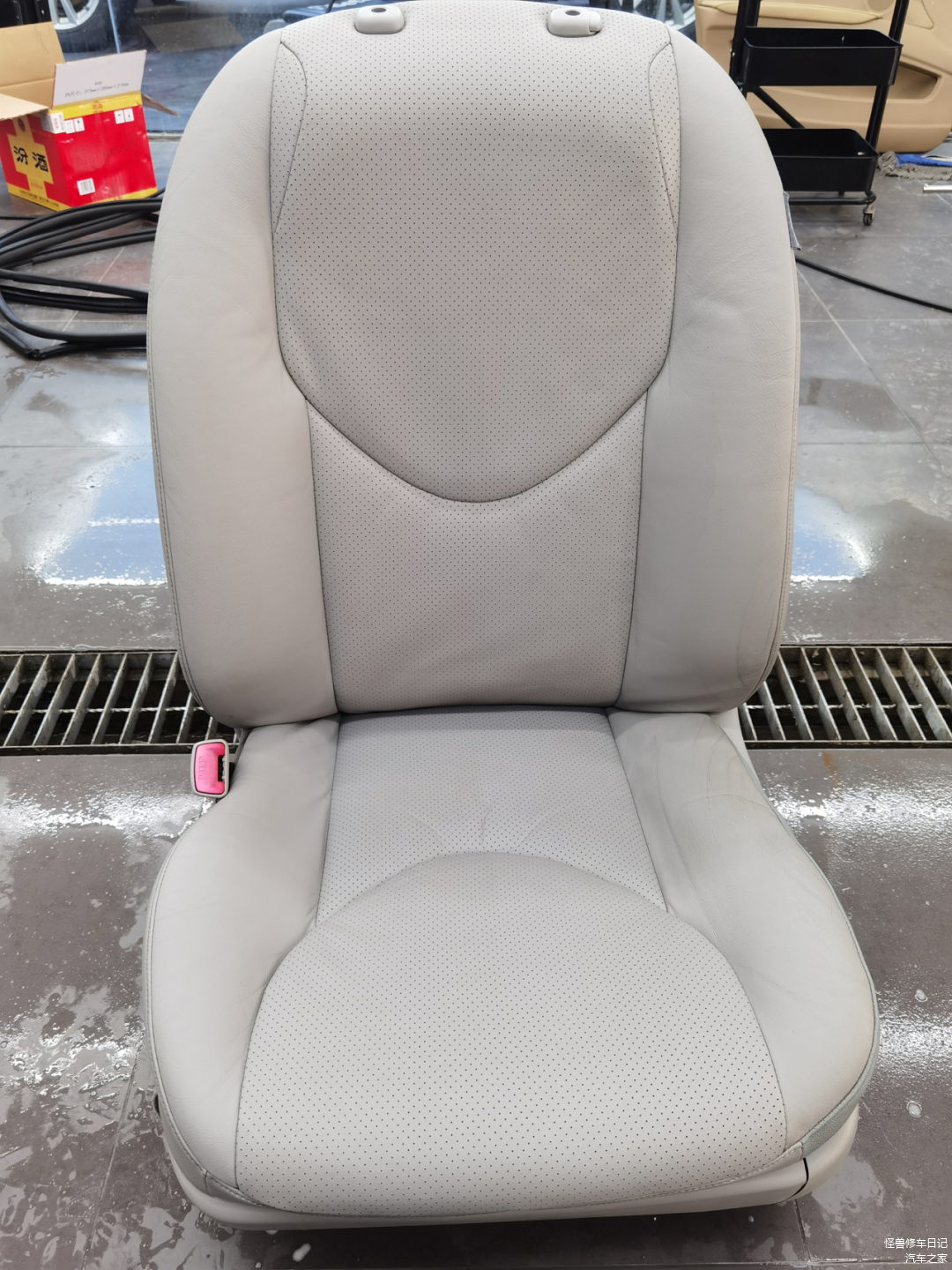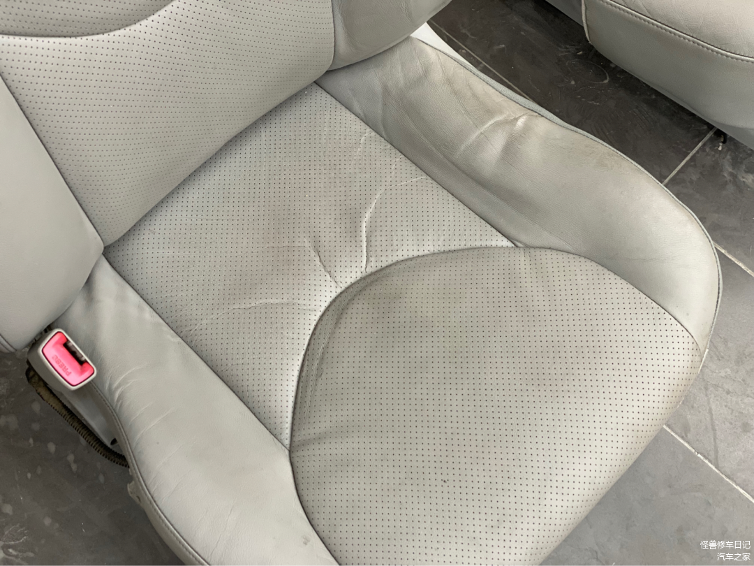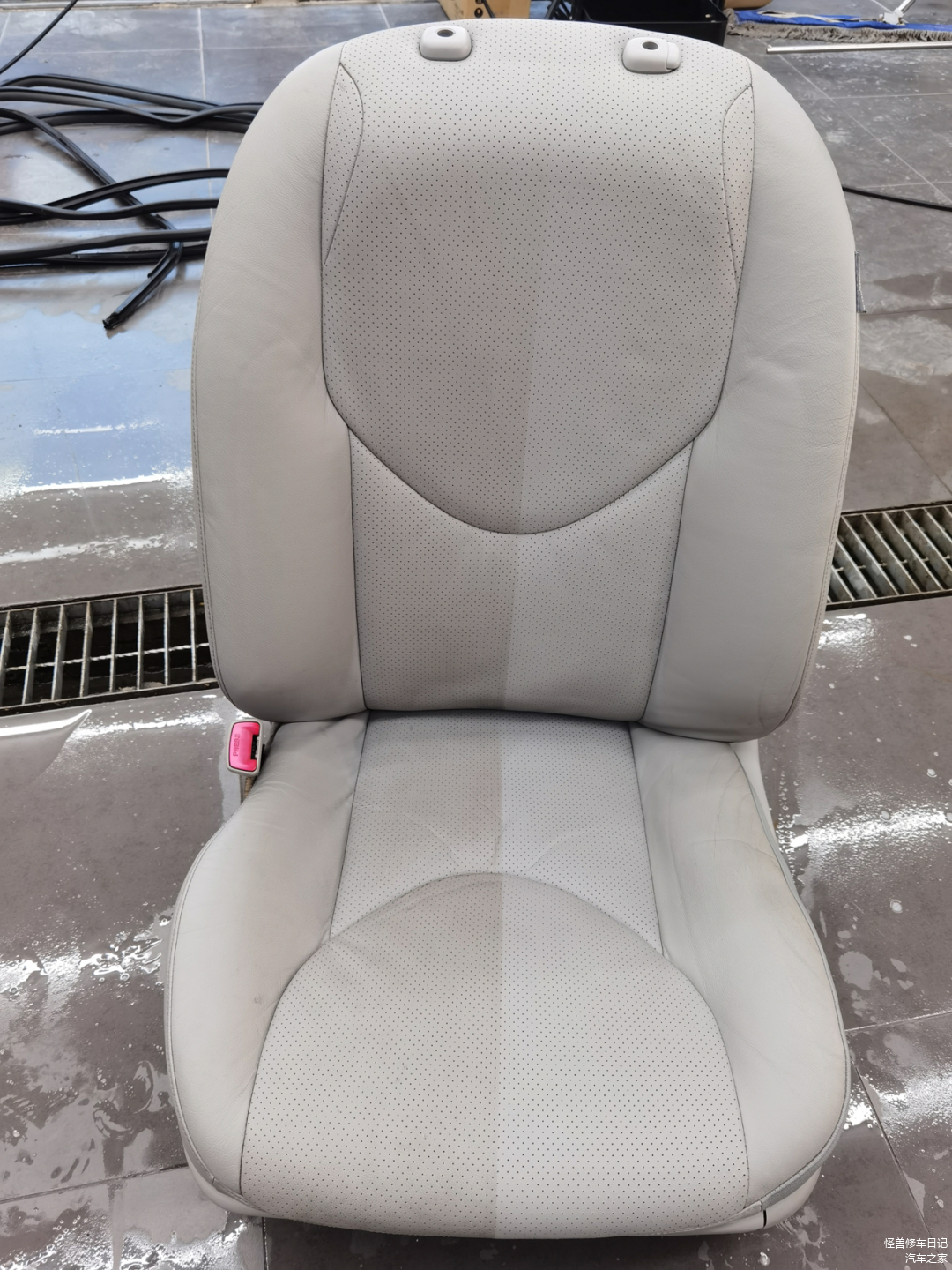 有些老车座椅老化了,洗干净也不会显新,所以咱们现在清洁时都会做下5:5对比看效果,右边清洁后看着还是可以的。