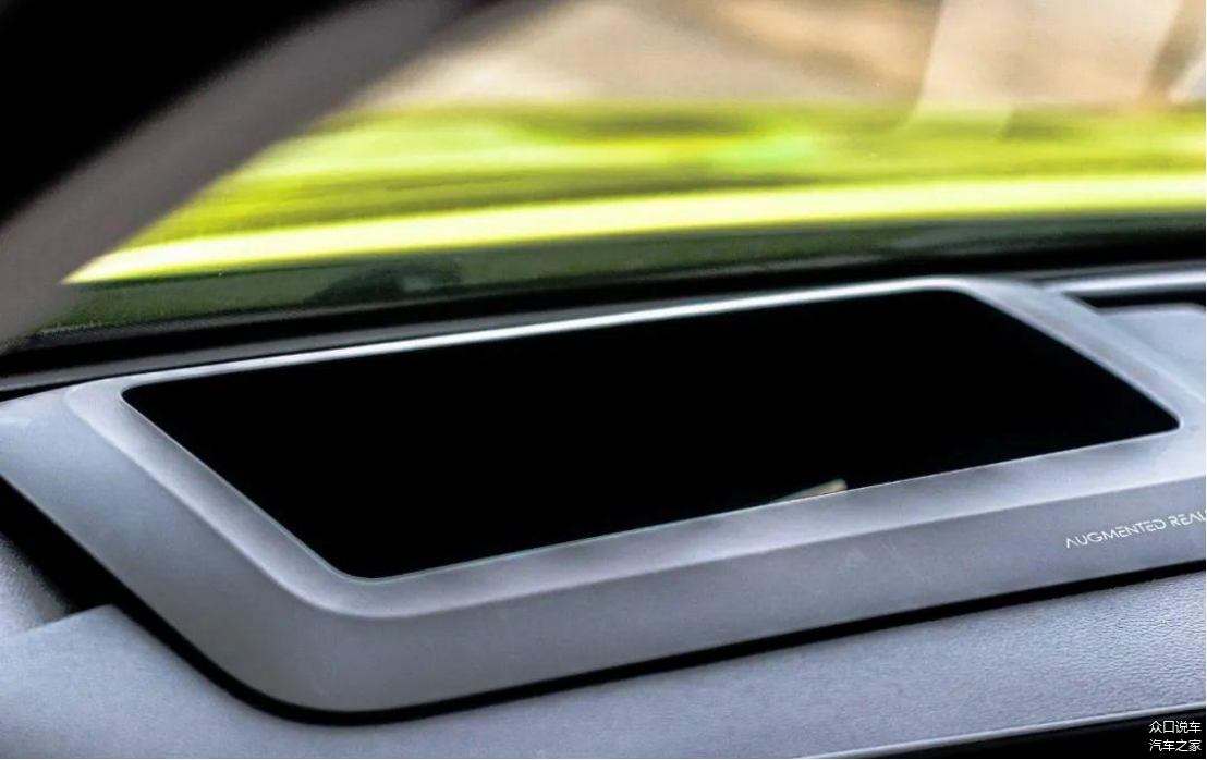 值得注意的是,跟一般抬头显示有所不同,北汽魔方采用的是奔驰S级同款的60英寸AR-HUD抬头显示系统,首先,该系统投射面积够大,而且分辨率有比较高(854×420像素),能够清晰的显示仪表、实景导航、辅助驾驶等信息,开车时,省去了低头看仪表盘的操作,一定程度上提升了驾驶安全性。