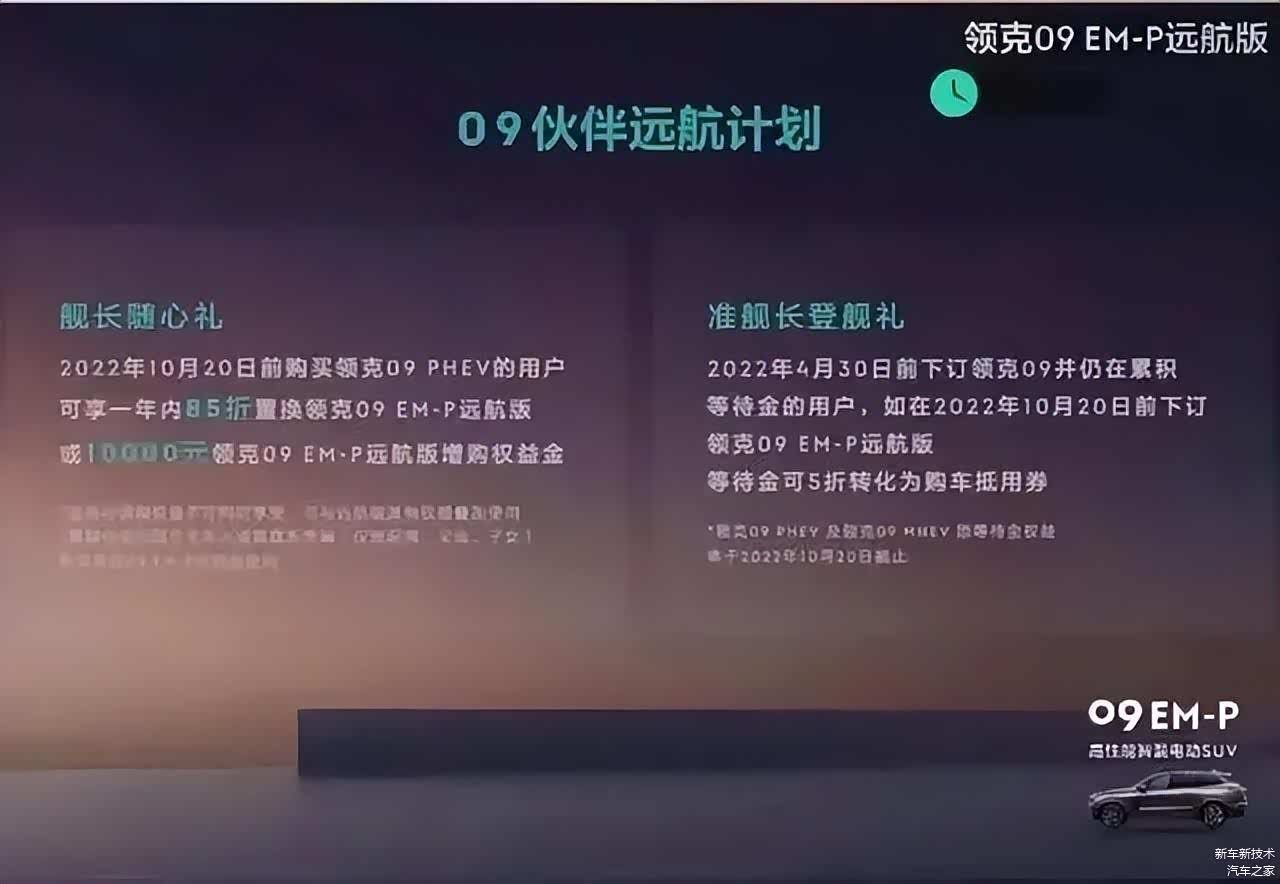 而领克为了照顾09PHEV老车主的感受,推出了1年之内85折回购的政策,这个回购政策是大幅高于市场真实的二手车成交价格。以7座HALO版的34.99万元价格计算,相当于车主支付了5万元的租车费用开了1年09PHEV。但市场上一台售价35万元的中大型SUV租赁价格是多少呢?保底也要600元/天,就算长租打个5折,一个月算1万块好了,1年也要12万。所以85折回购,真的是很良心了。